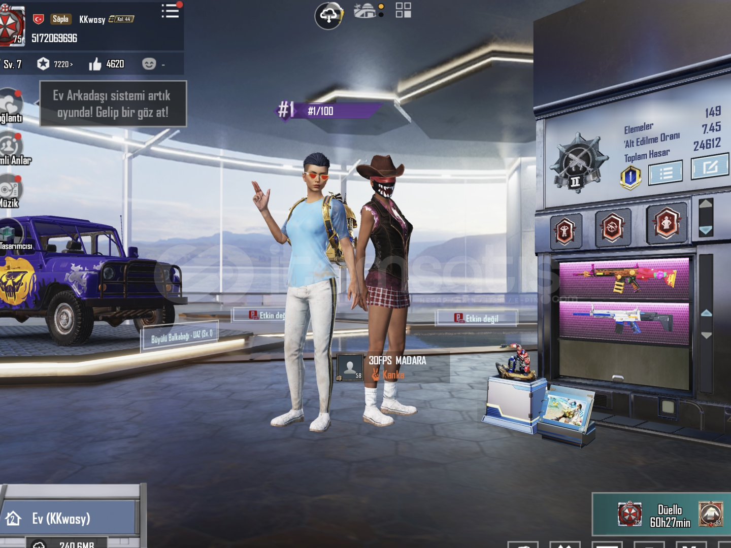 HesaptaS4 saçıFiravun CantasıMavi Siyah FormaKomutan Seti fullThe walking Dead setleriNadir araçlarVe daha birçok şey mevcutturHesap detaylı inceleme için : 5172069696