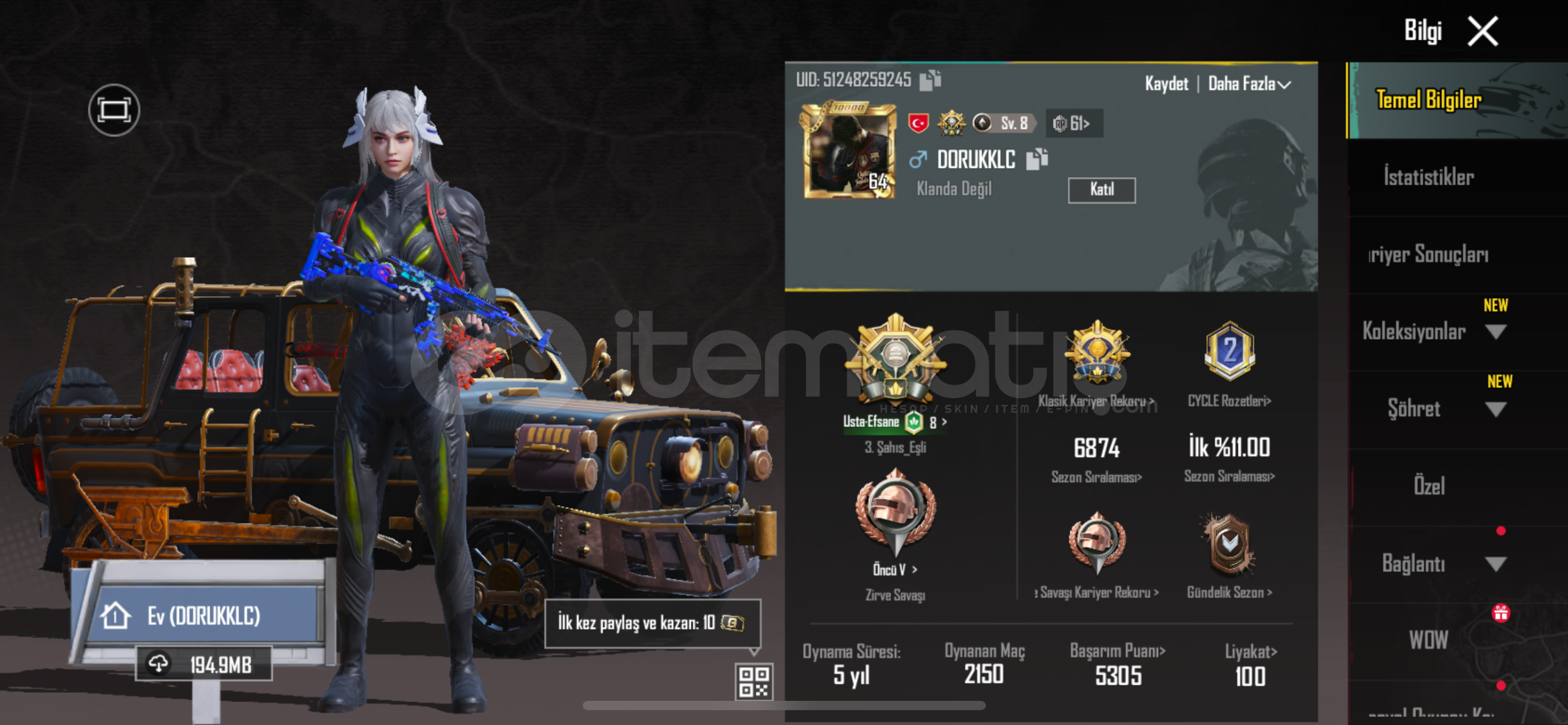 26 destansı,işgalci seti,midilli m7,acil satmam gerek,sudan ucuz,silah desenleri var,2 godzilla seti var,bolca rp setleri var,google maile bağlı tek,tr sunucusu
