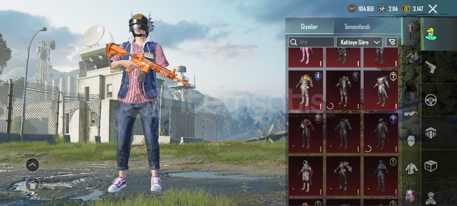 PUBG MOBİLE 76 SEVİYE 10 YÜKSELTİLEBİLİR DESTANSI GÖSTERİŞS2 KIYAFETLERİ TDM KIYAFETLERİ COK NADİR OLMASADA GÜZEL OLANLARDAN BULUNMAKTA...ORMAN BASKINI GROZA 4 SEVİYE.KÜÇÜK MİDİLLİ M772 2 SEVİYE.BASTON ŞEKER THAMPSON 2 SEVİYE.EJDER KATİLİ YADİGARI PALA 2 SEVİYE.ÇIĞLAKLAR SİRKİ ARBALET 2 SEVİYE.LİDER PANTER DBS 2 SEVİYE.ZAR&#...