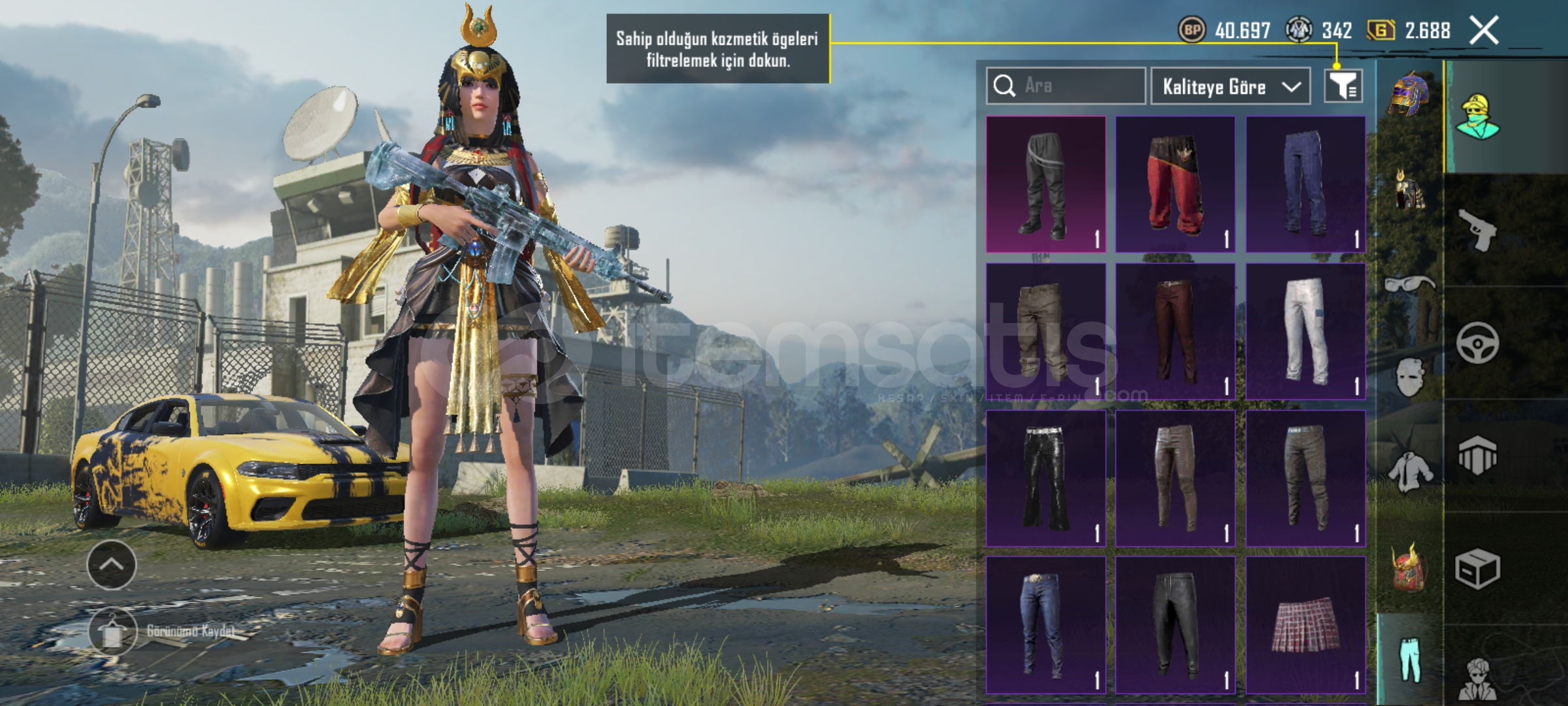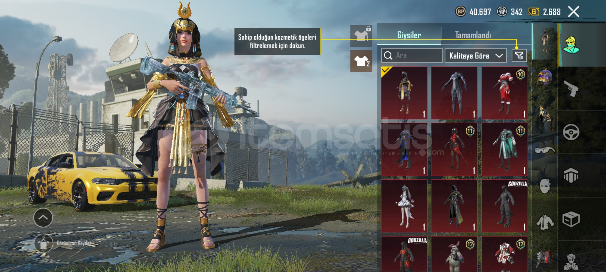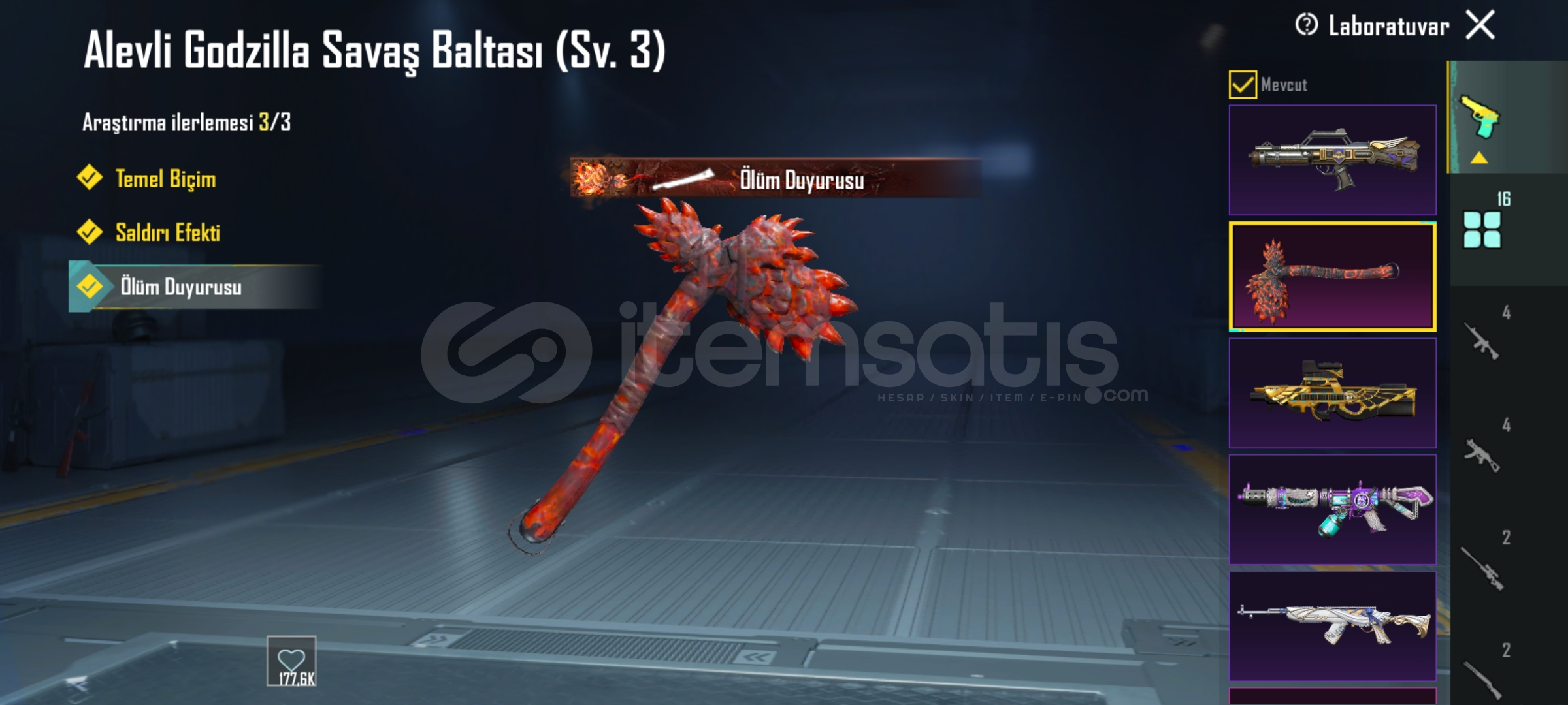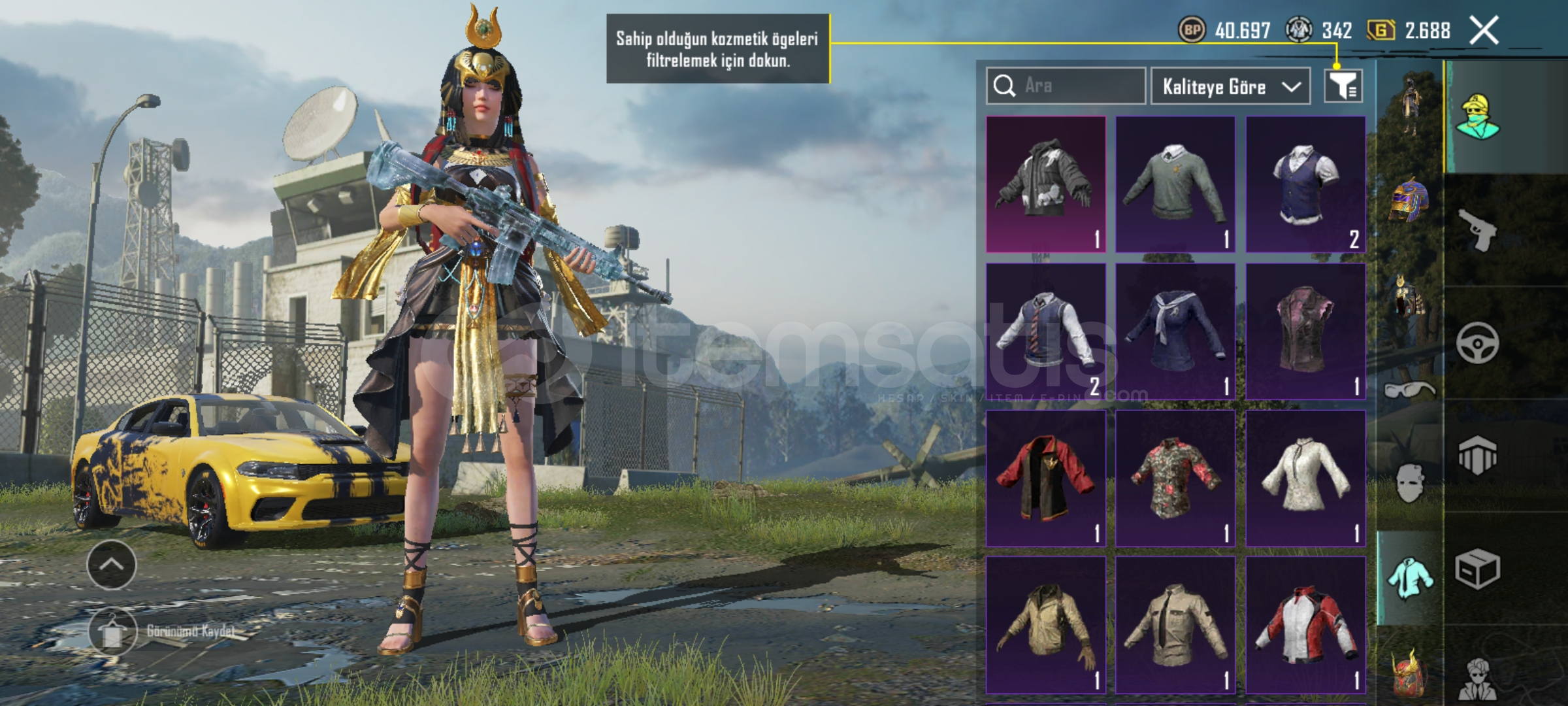 hesabın içindekiler şunlardır:buz diyarı m416 4 seviyespor arabaDalgıç seti1 destansı amblem ve 1 malzeme7 günlük oda kartı 4 kill mesajlı silah