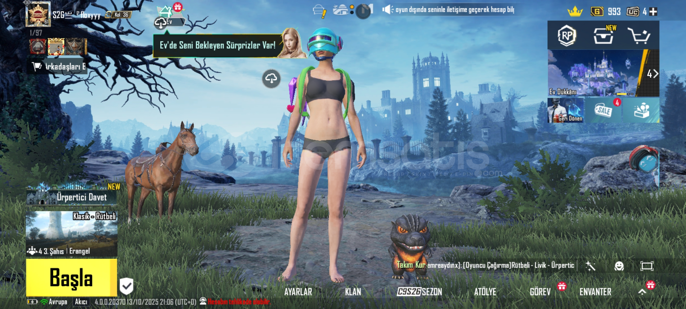 61 seviye buz m416 3 seviye maskara m416 1 seviye Midilli m762 2 seviye gecenin şarkısı groza 1 seviye Godzilla savaş baltası virus efekti 2 seviye 12 yükseltilebilir silah işgalci setli 15 destansı hesap id bakmak isteyenler için 51976556877