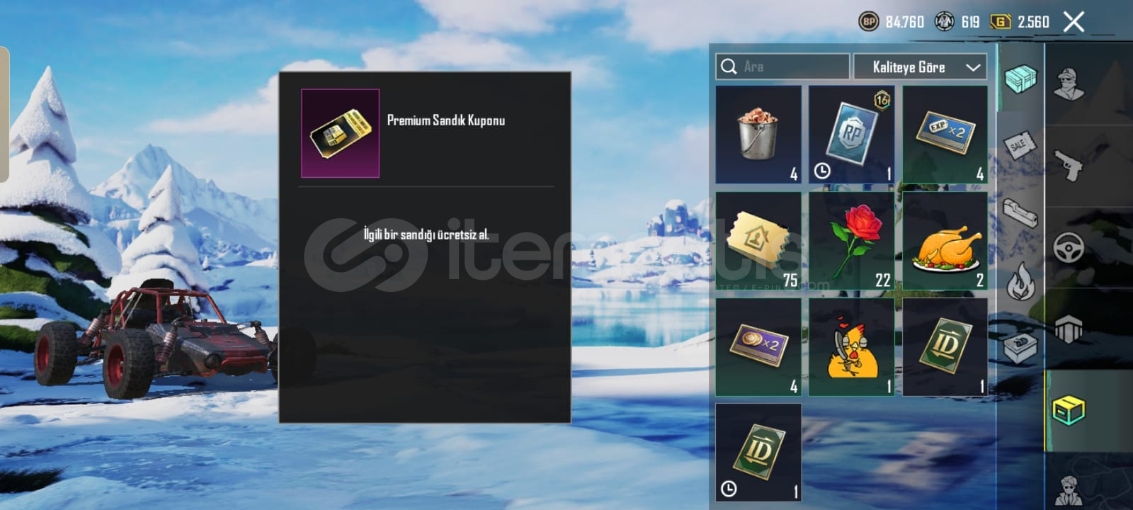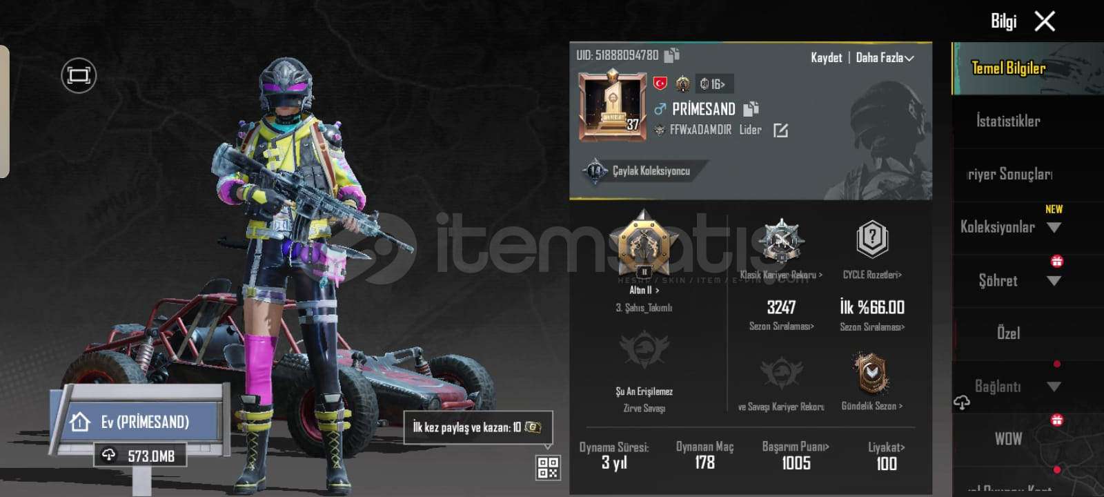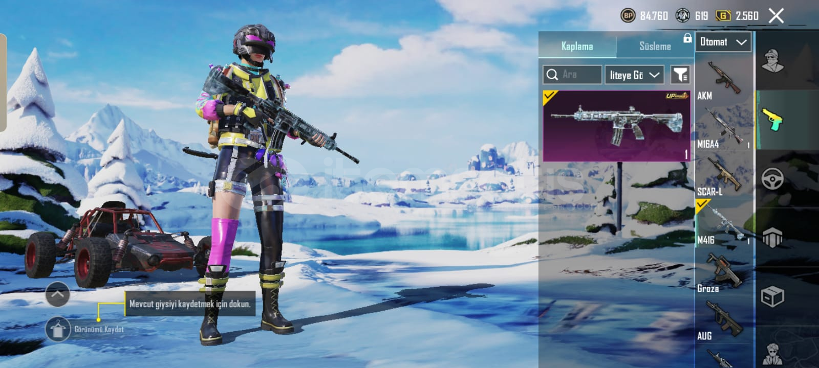Buz diyarı m416, 1 adet ID kart, 2020den kalma, 37 level, 5 adet nadir kostüm, xsuit döneminden 1 sis bombası deseni ve daha fazlası...