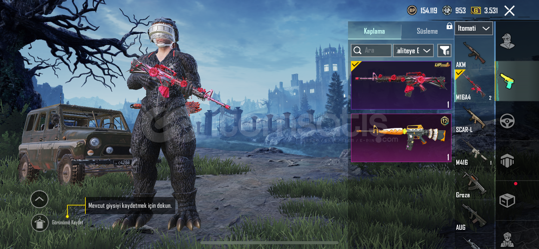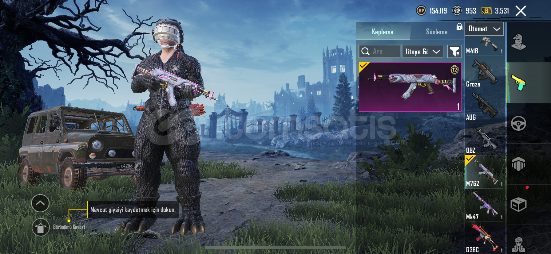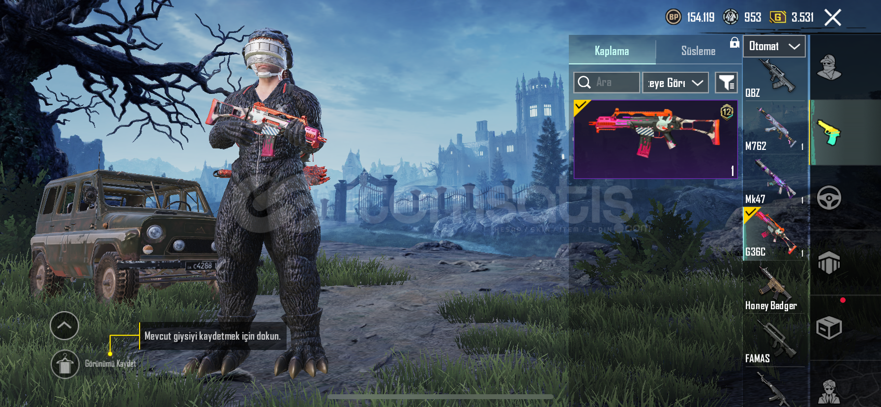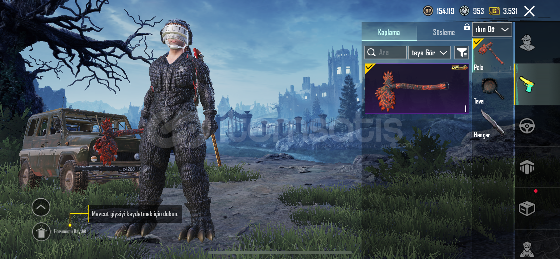 Hesapta Godzilla çantası Godzilla kaskı ve 2 adet Godzilla kostümü vardır motor minibüs ve silah skinleride vardır 500 tl alıcısına hayırlı olsun temiz hesap