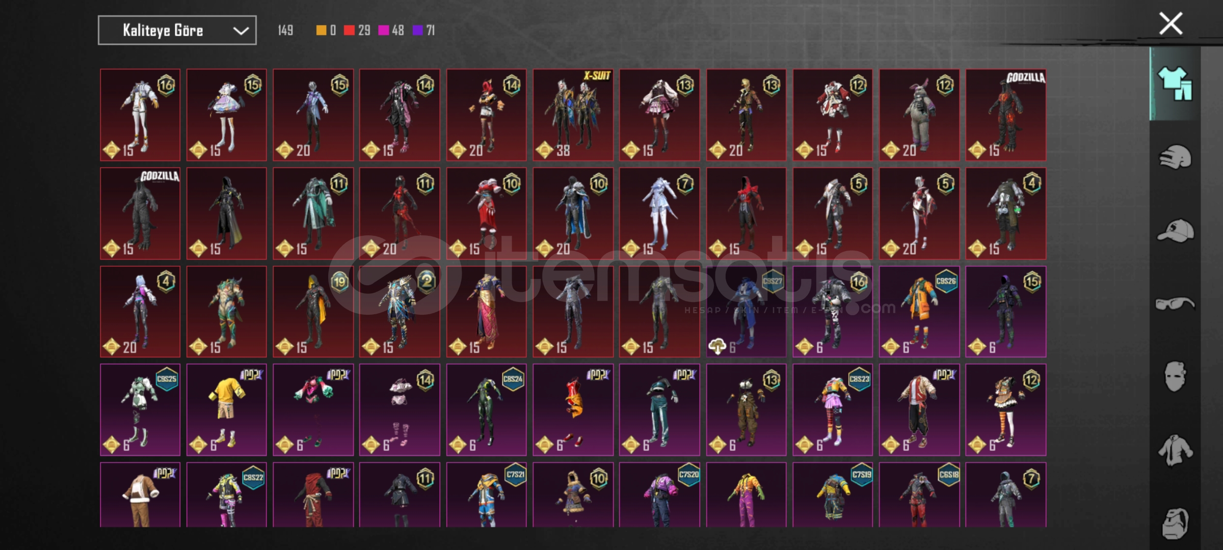 P.U.B.G Mobile hesabım satılıktır emek hesabım x suit kask AVM çantası planör herşeyi vardır buz 6 işgalci set + maskesi var, komutan full , ananas full , firavun çantası 16 yükseltilebilir silah 2 destanı kaldı destansı gösterişe r,p açık