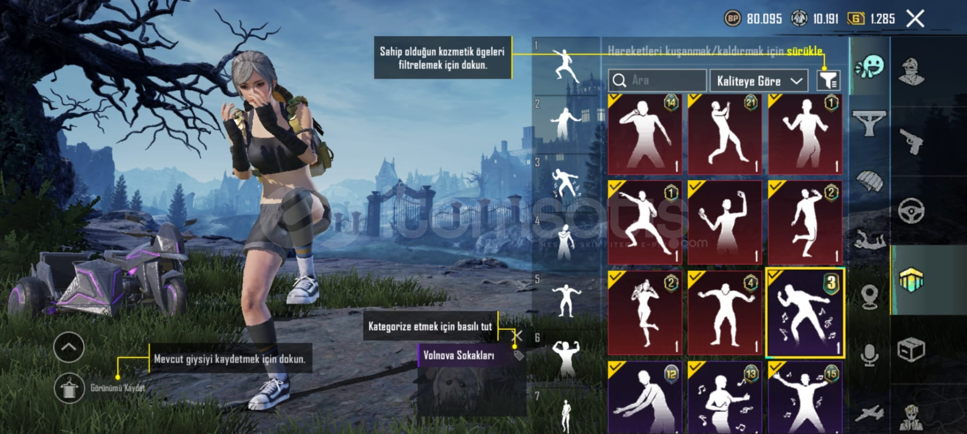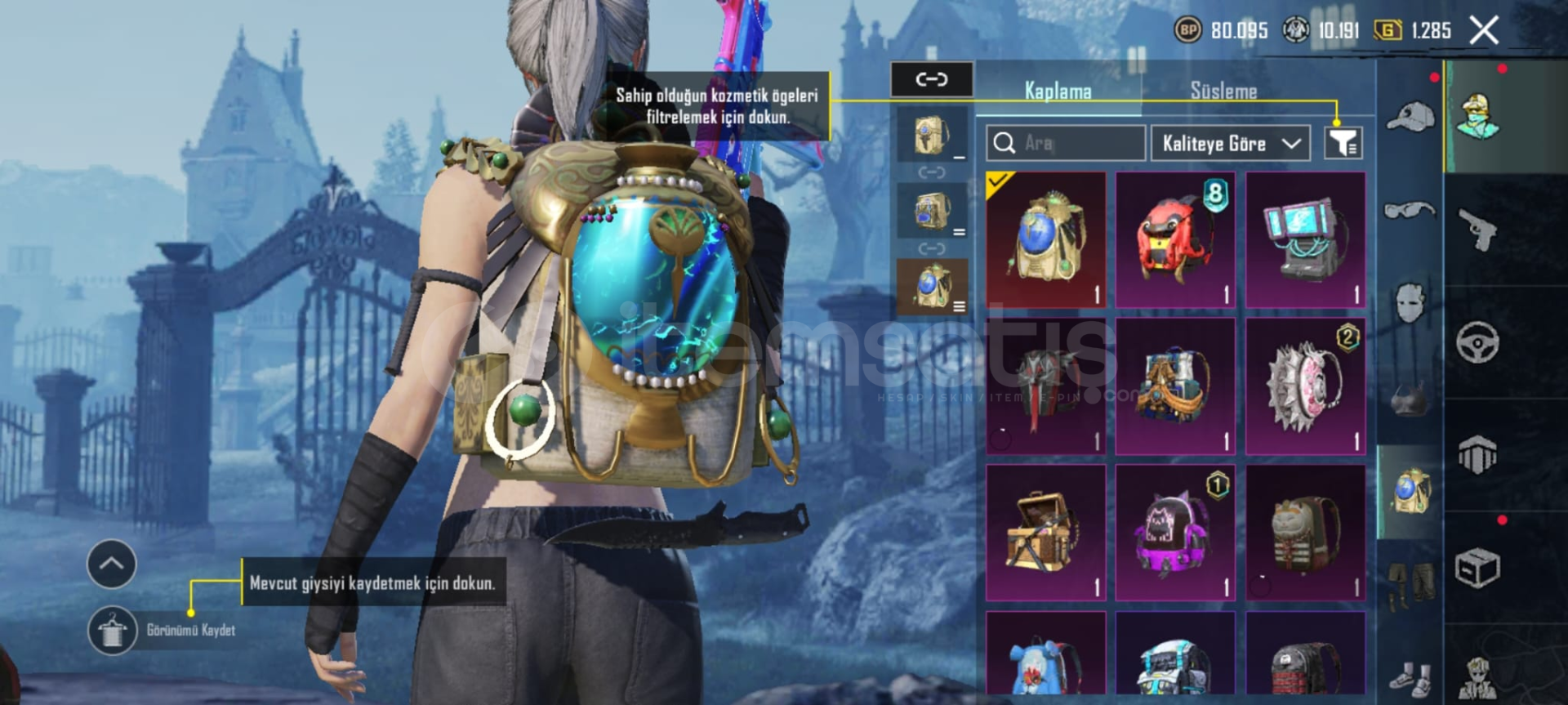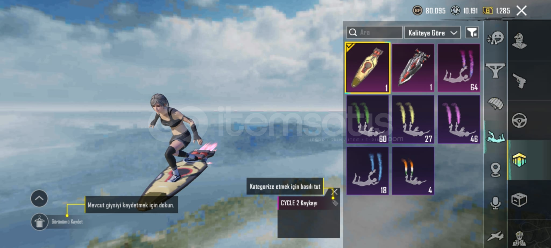 Oyunu biraktigim icin satiyorum gmail telefon numarasi bagli alan kisinin bilgileri ile degistirilecektir hesap 61 lvl 90 uc var hesapta 6 rp acilmis 5 ucak deseni 23 24 destansi kostum var 6 yukseltilebilir silah 2 tanesi full bicak ve ump 4 buggy 1 motor 1 tekne 1 tank deseni var birsuru emoji ve sezon 3 emojisi kedi yoldasi vardir 7 tane kirmizi kristal birsuru oda karti vardir alana hayirli olsun detayli bilgi icin dm gelinİD:51691779413