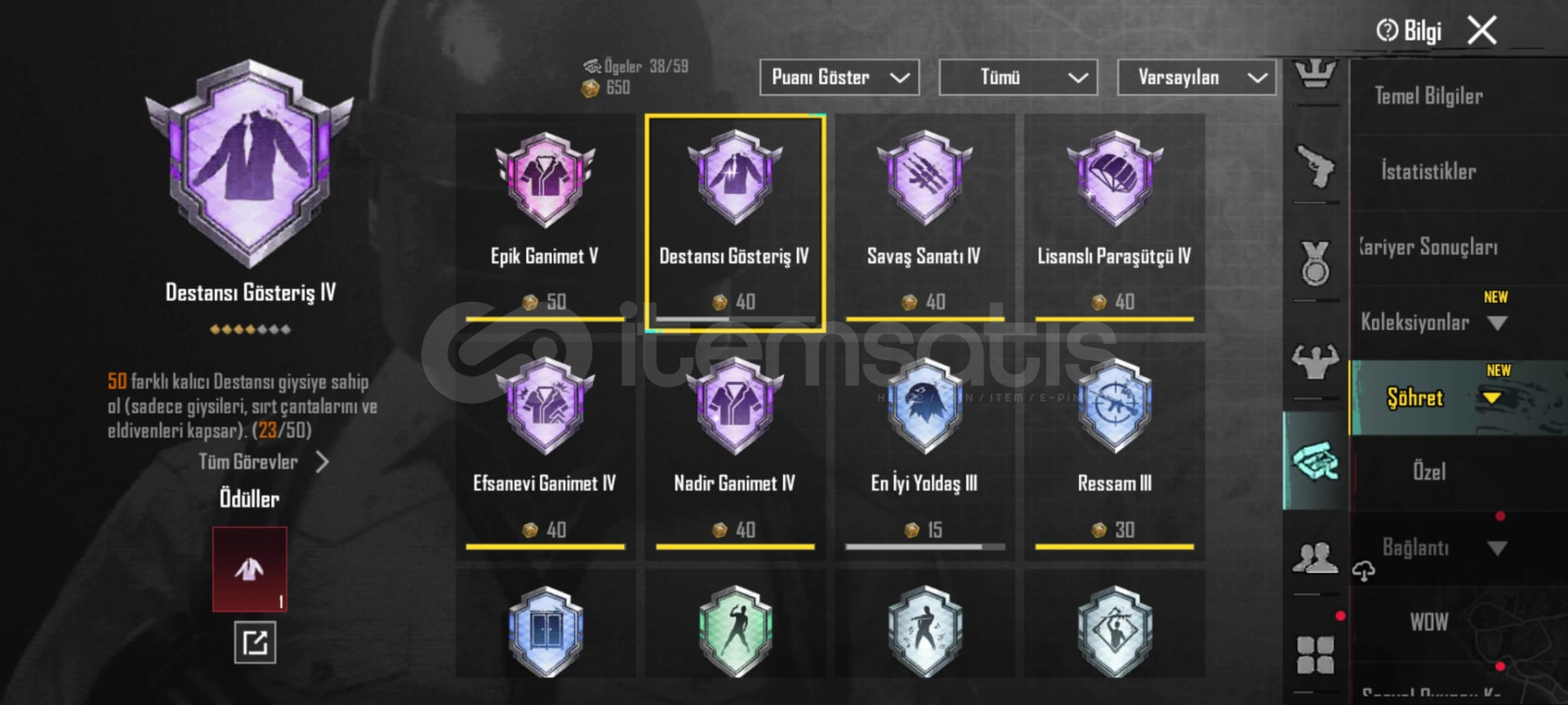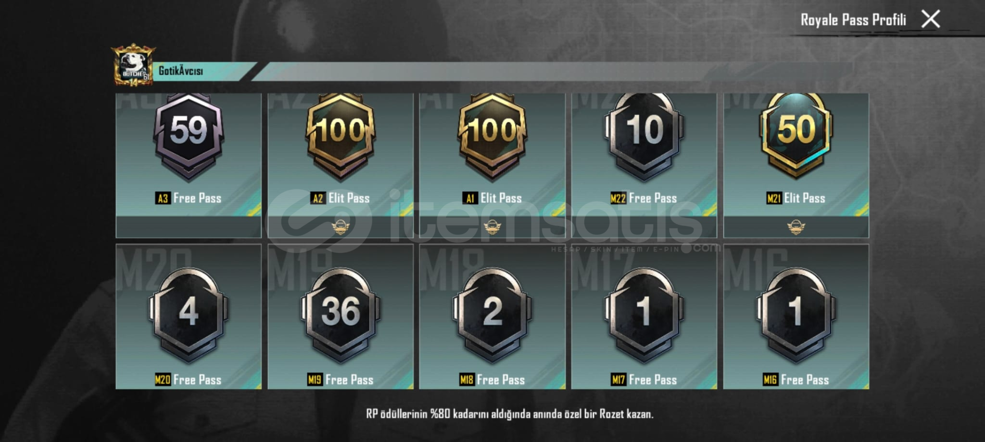 Oyunu biraktigim icin satiyorum gmail telefon numarasi bagli alan kisinin bilgileri ile degistirilecektir hesap 61 lvl 90 uc var hesapta 6 rp acilmis 5 ucak deseni 23 24 destansi kostum var 6 yukseltilebilir silah 2 tanesi full bicak ve ump 4 buggy 1 motor 1 tekne 1 tank deseni var birsuru emoji ve sezon 3 emojisi kedi yoldasi vardir 7 tane kirmizi kristal birsuru oda karti vardir alana hayirli olsun detayli bilgi icin dm gelin