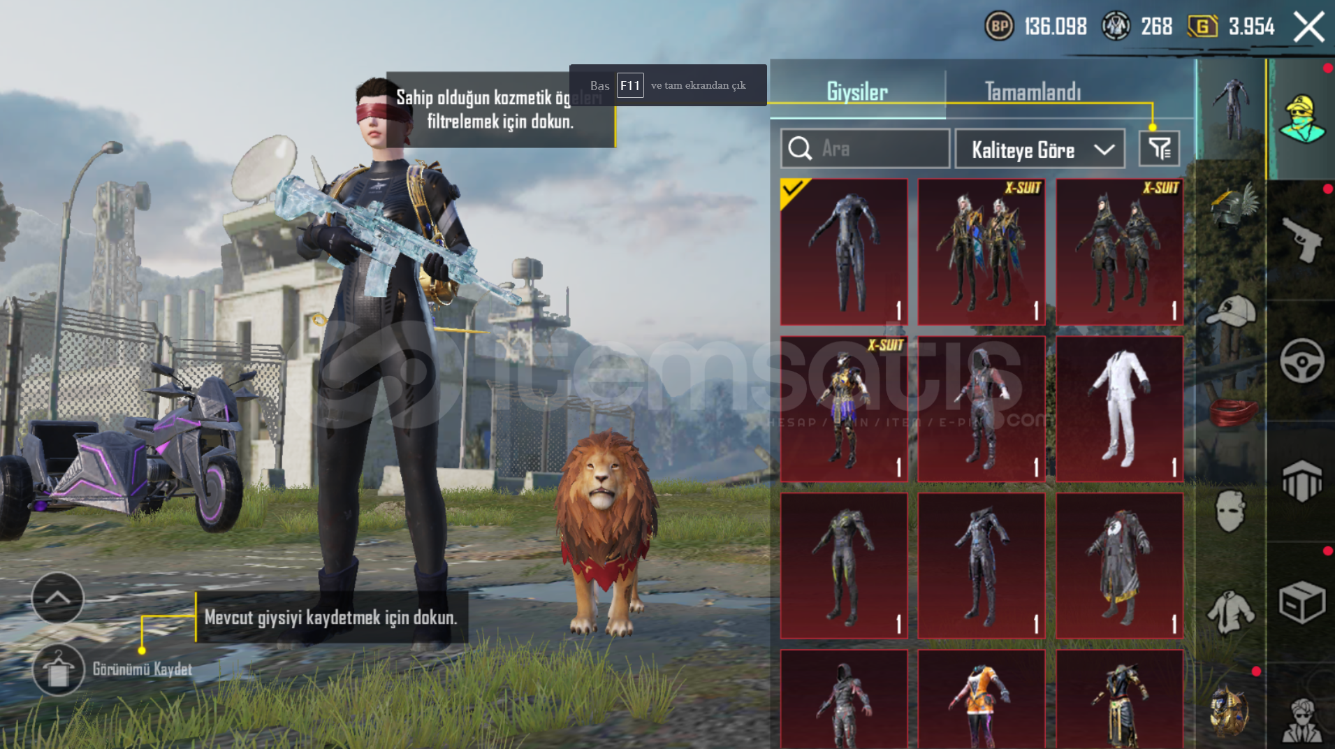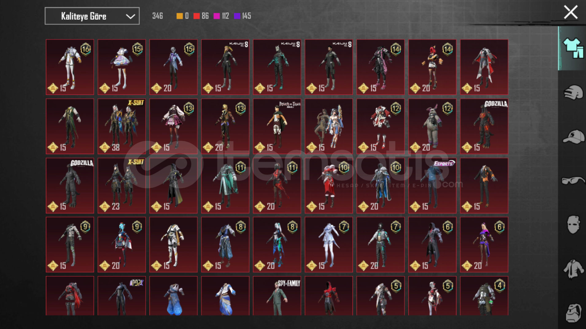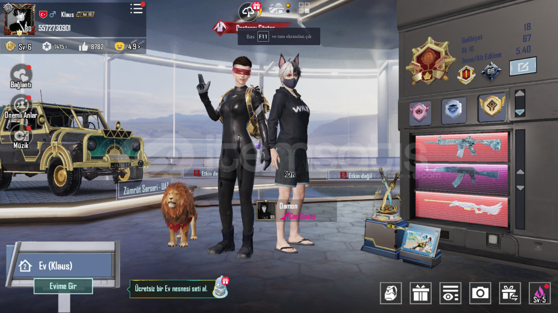 Toplam 142 adet destansı bulunmaktadır.33 adet yükseltilebilir silah.66 seviye koleksiyon.royale pass açık.3 adet x suit.Mail değişimi ile hesap devredilir.