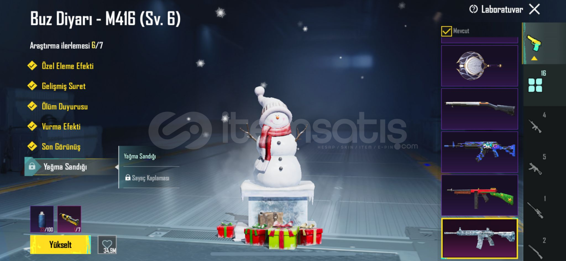Önemli Silah: Buz Diyarı m416 (6 seviye), Altın Pençe P90 (3 seviye), Ruhbiçen Ump (3 seviye), Midilli M762 (4 Seviye Ölüm duyurusu), Vahşet Uzi (2 seviye)