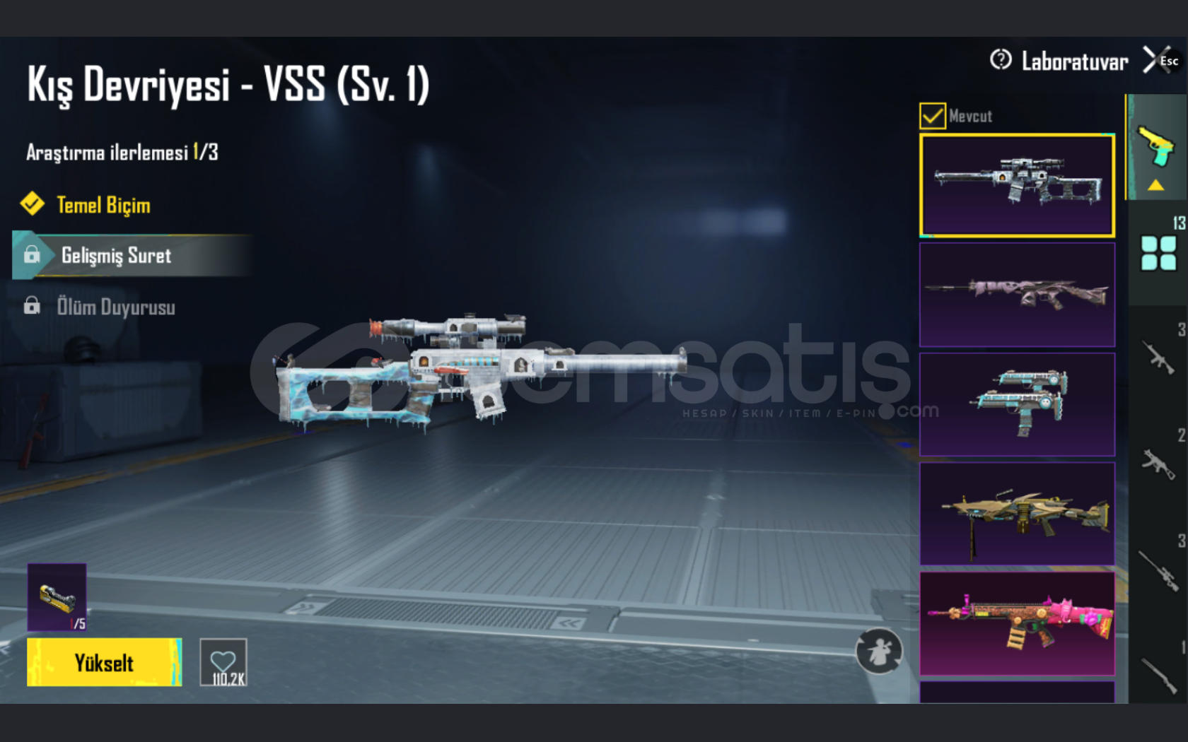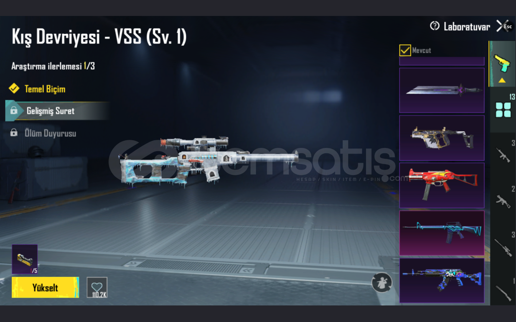 • YÜKSELTİLEBİLİR SİLAHLAR KIŞ DEVRİYESİ VSS 1.SEVİYE,DEHŞET PERDESİ SLR 1.SEVİYE,ŞEKERLİ HORTLARK MP7 1.SEVİYE,AVCI PROTOKOLÜ M249 1.SEVİYE,MAMA TABANCASI SCAR-L FULL,ATOMİK TETİK S12K,TALİH KEDİSİ MİNİ-14 1.SEVİYE,ÇIĞLIKLAR SİRKİ ARBELET 1.SEVİYE,EJDER KATİLİ YADİGARI PALA 1.SEVİYE,YALDIZLI BİÇİCİ VECTOR 1.SEVİYE,EMP UMP-45 (HER İKİ RENGİDİ AÇIK) 4. SEVİYE,ŞAFAĞIN NABZI M16A4 1.SEVİYE,KÜÇÜK MİDİLLİ M762 4. SEVİYE