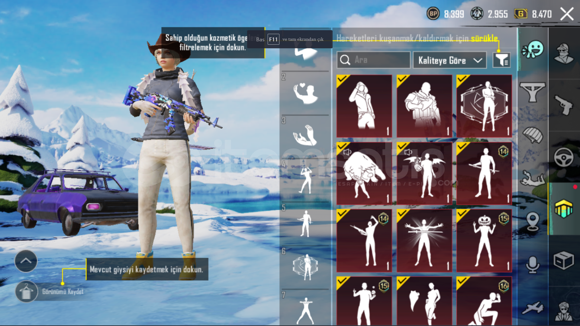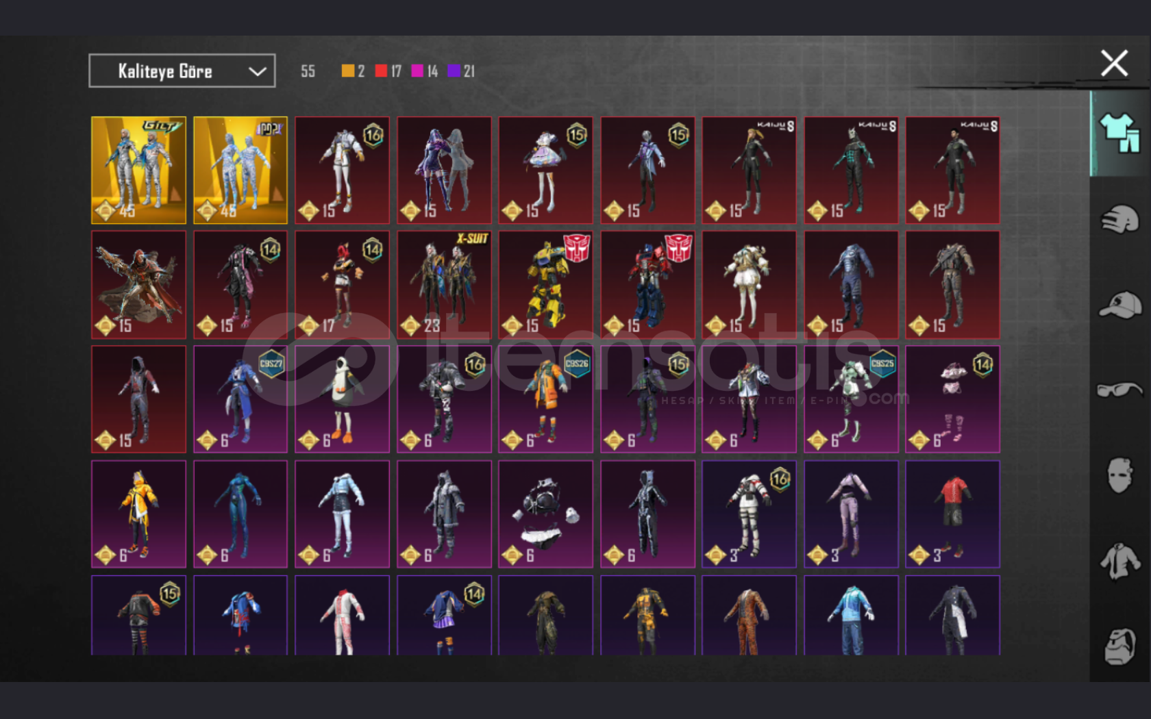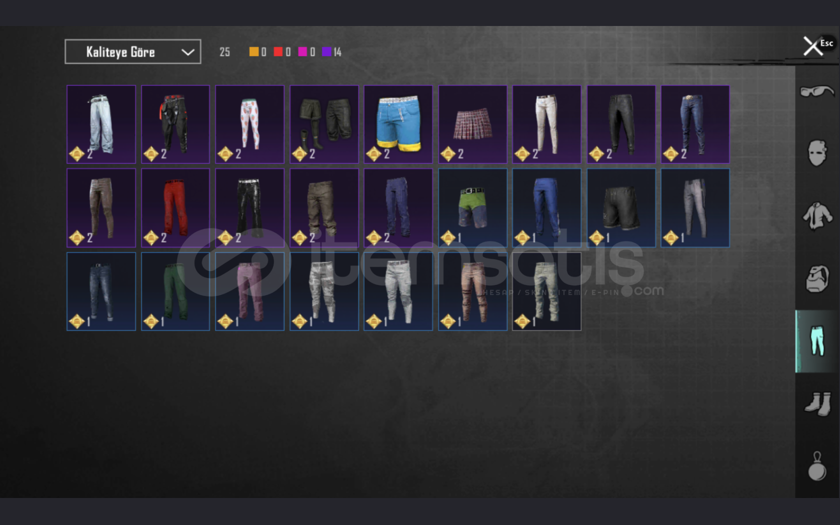 • HESAPTAKI ROYALE PASS LER 14. SEZON (HER İKİ SET VE YÜKSELTİLEBİLİR SİLAH 100 SV.) 15. SEZON (HER İKİSİDE VE YÜKSELTİLEBİLİR SİLAH 100 SV.) 16. ZEZON (40 SV. SETİ VE YÜKSELTİLEBİLİR SİLAHI)