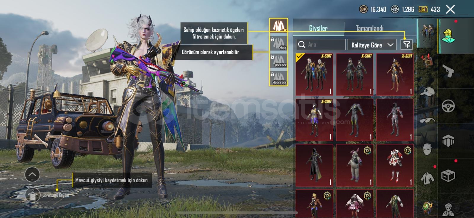 hesapta 4x suıt fıravun 2 sevıye maskara 5 ruhbiçen ump 2 kahramanın kalbi awm 2 seviye 2 adet destansı canta 1 adet destansı kask 4 emojılı destansı set 3 sezon rp vardır alıcısına sımdıden hayırlı olsun