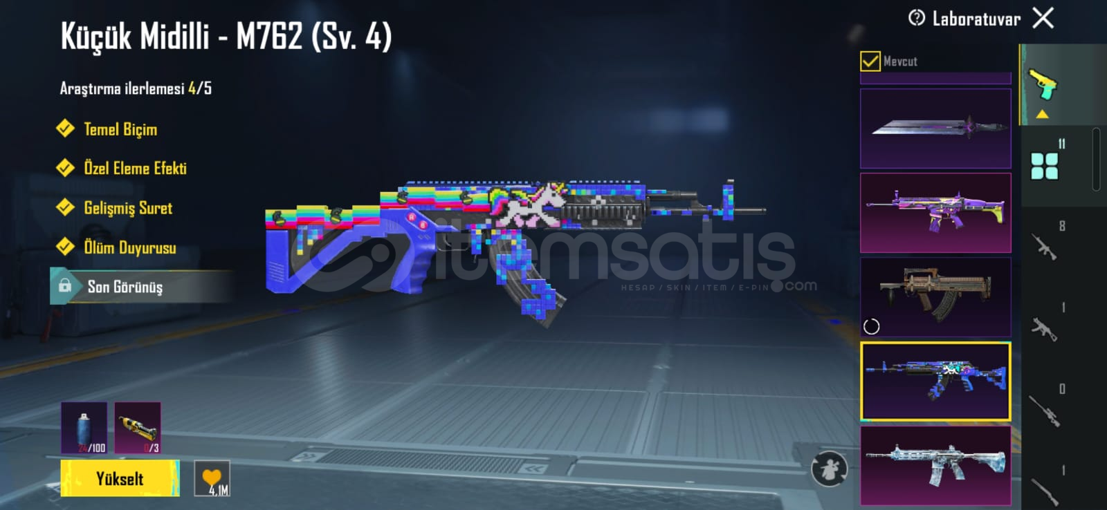 Buz Diyarı M416 4LVL + Midilli M7 4LVL +Maskara Scar-l 1 level +8 yükseltilebilir silah mevcuttur