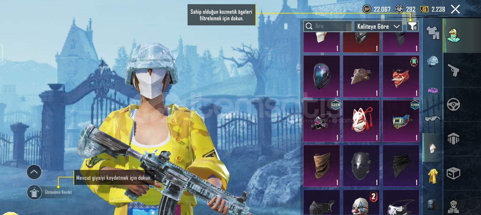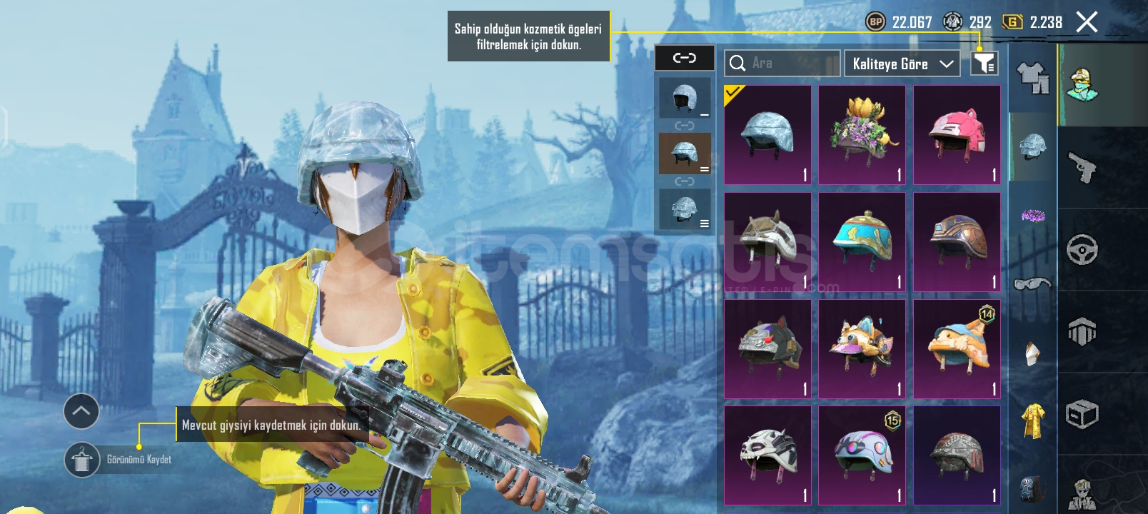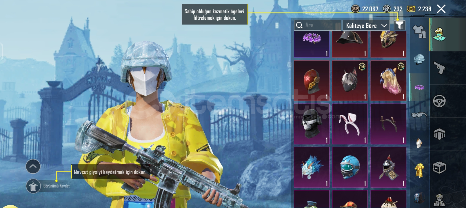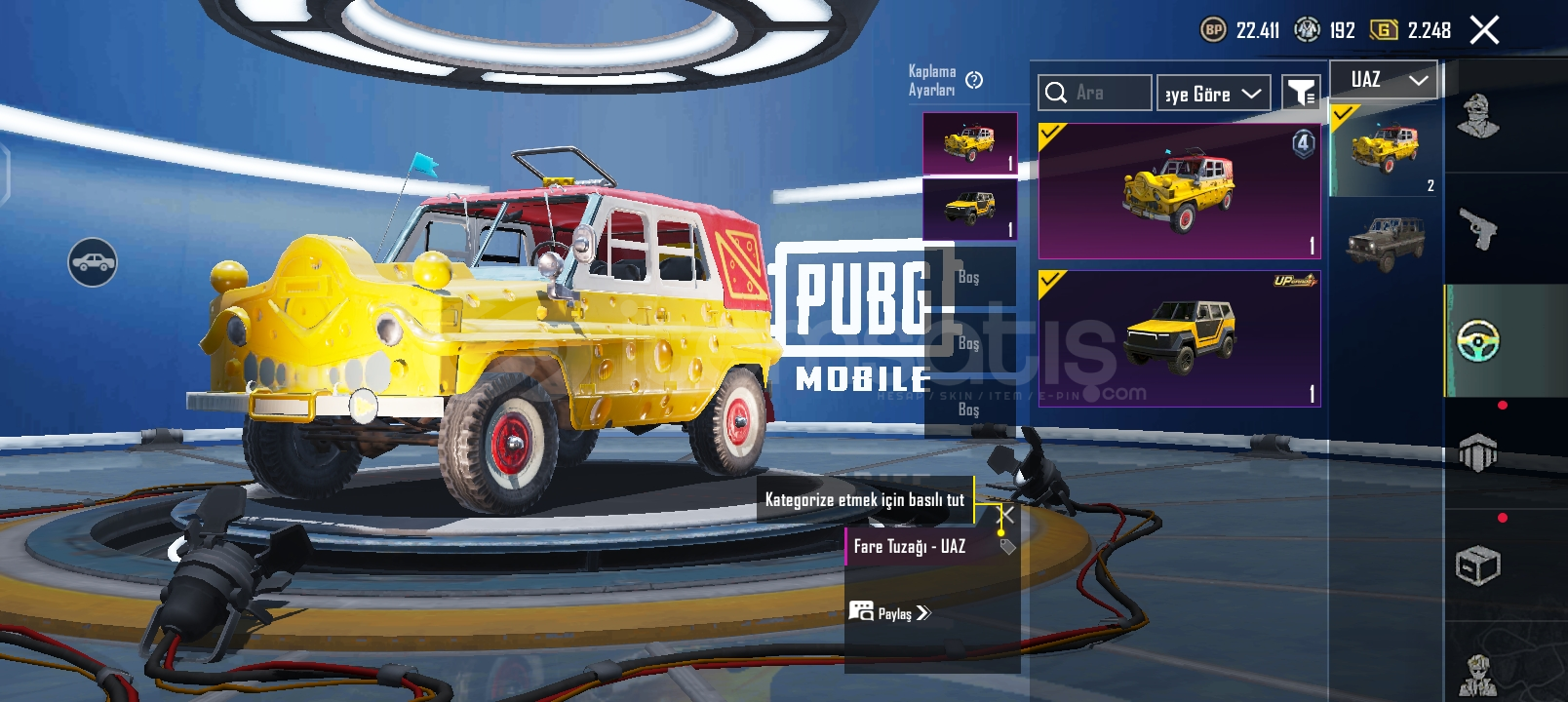 PUBG MOBİLE UYGUN EFSANE HESAP HESABTA ANANAS SETİ FUL VE KONMUTAN SETİ FULL 3 TANE YÜKSELTİLEBİLR SİLAH VAR BUZ M4 2 SEVİYE SCAR-L 3 SEVİYE ÖLÜM DUYURULU İSTEYENE CİDDİ ALICIYA VİDEO ATILIR.