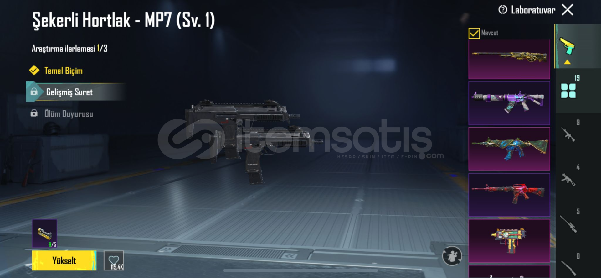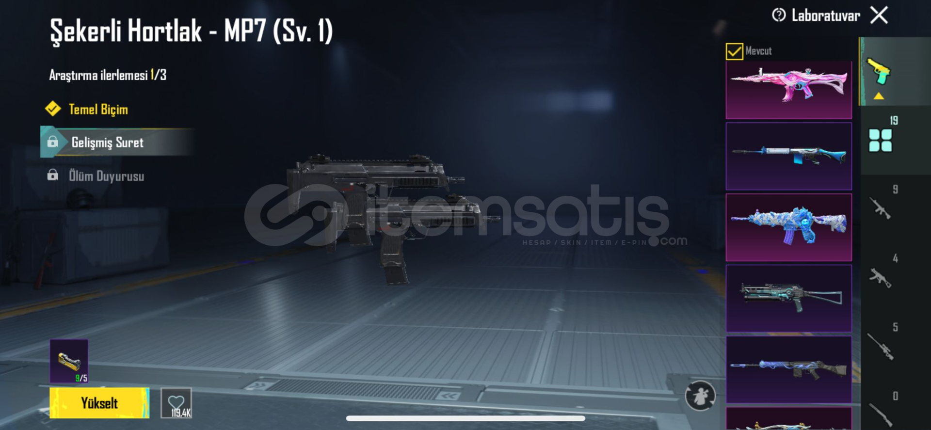 Hesapta yükseltilebilir birçok silah ve destansı mevcut