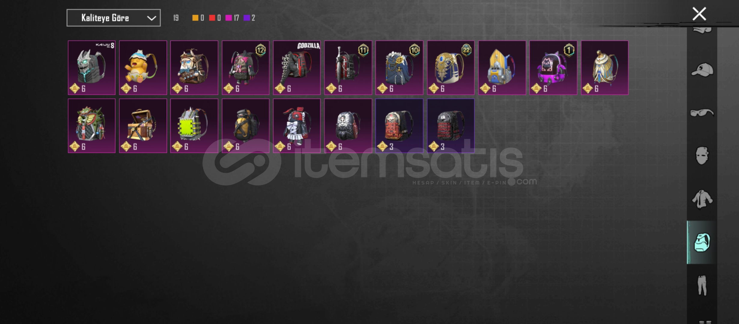 Full Kostüm + Nadir Setler + Araç Skinli Hesap (Godzilla, Kafatası, Kar98 Skinli!) 🔥Buz M4 4 seviye+ maskara M4+St1 ump2. Zengin Kostüm Envanterli Hesap | 100+ Set + Efsane Çantalar 🎒🔥3. Koleksiyonluk PUBG Hesabı | Nadir Kostümler + 19 Çanta + Araç Skinli 🚙🔥4. Full Kombinli Hesap | Efsanevi Kostümler + Özel Godzilla Setleri 💎5. Kostüm Canavarı Hesap! 120+ Set + 19 Çanta...