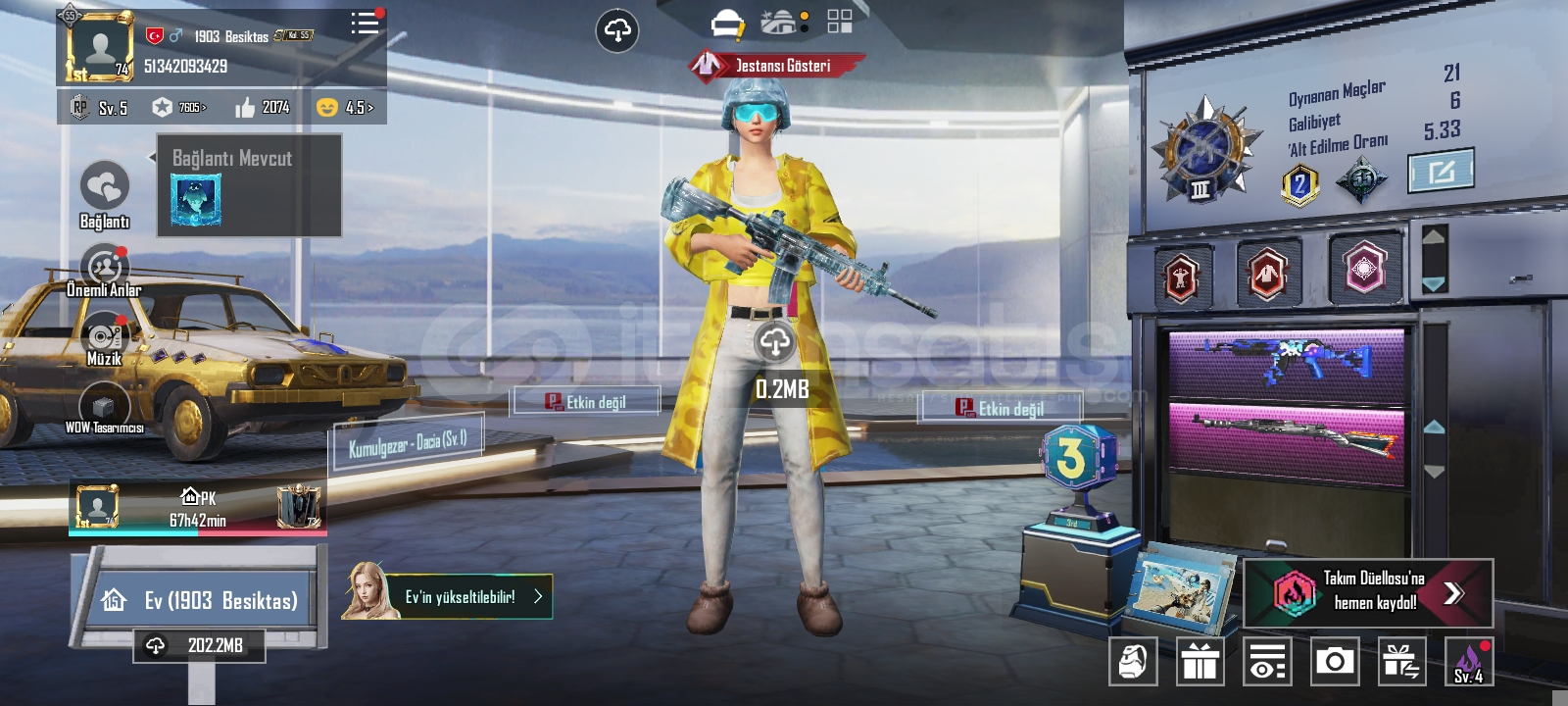 74svy13yukseltilebilir silah buzm4, Midilli M7, titanyum kar98 vb.34 ünvan destansı gösteriş, eşsiz başarı vb unvanlar kaçırmayın hızlı olan alırDolu ve ful hesap pubg