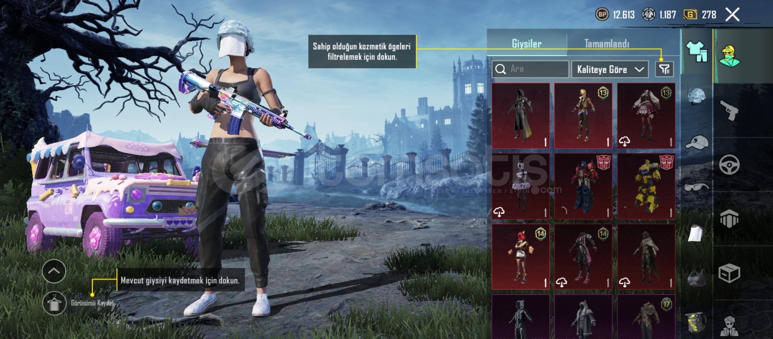 Merhaba Alttakiler Hesabta Olan Şeyler10Destansi Buz Kaskı Maskeli Medyum MaskesiBirusru Kostüm İşgalci Çantası Birsuru Palto2 Uaz Kostümü 7 Yuks Silah Sürüm-Bugi Vugi2 Tane Uçak Skini1 Tane Eskort Uçak