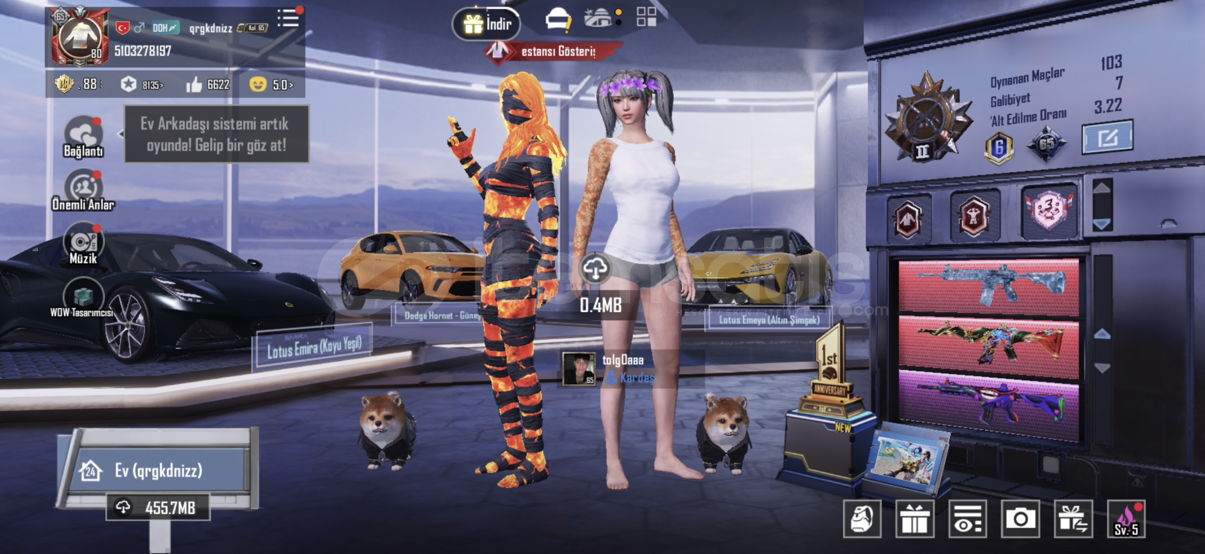 buz 7 maskara 6 yakan kükreme 8 maskara scar 3 m24 4 messi m7 45 xsuit 2 nihai firavun vardır 2 tane lotus araba 1 tane dodge65 koleksiypn 140 destansı 2 çanta HESABIN FORM GEÇMİŞİ VARDIR ÇALINDI ÖYLE GERİ ALINDI KANITLI SIKINTI ÇIKMAZ