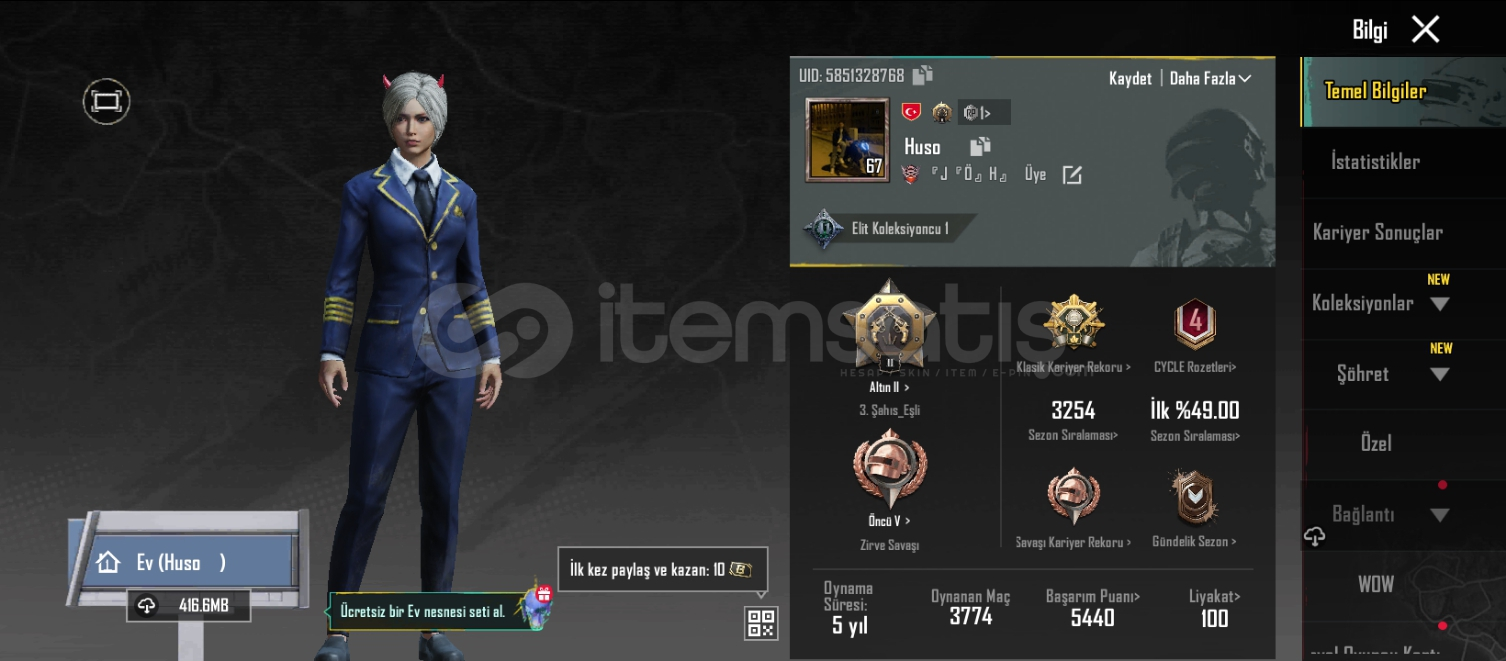 Pubg Uyguna Hesap 5 Yıllık 550 Uc