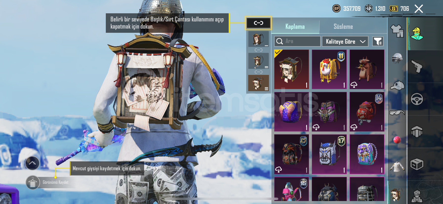 ve diğer silahlardada desenler var toplam 23 yükseltilebilir silah deseni var