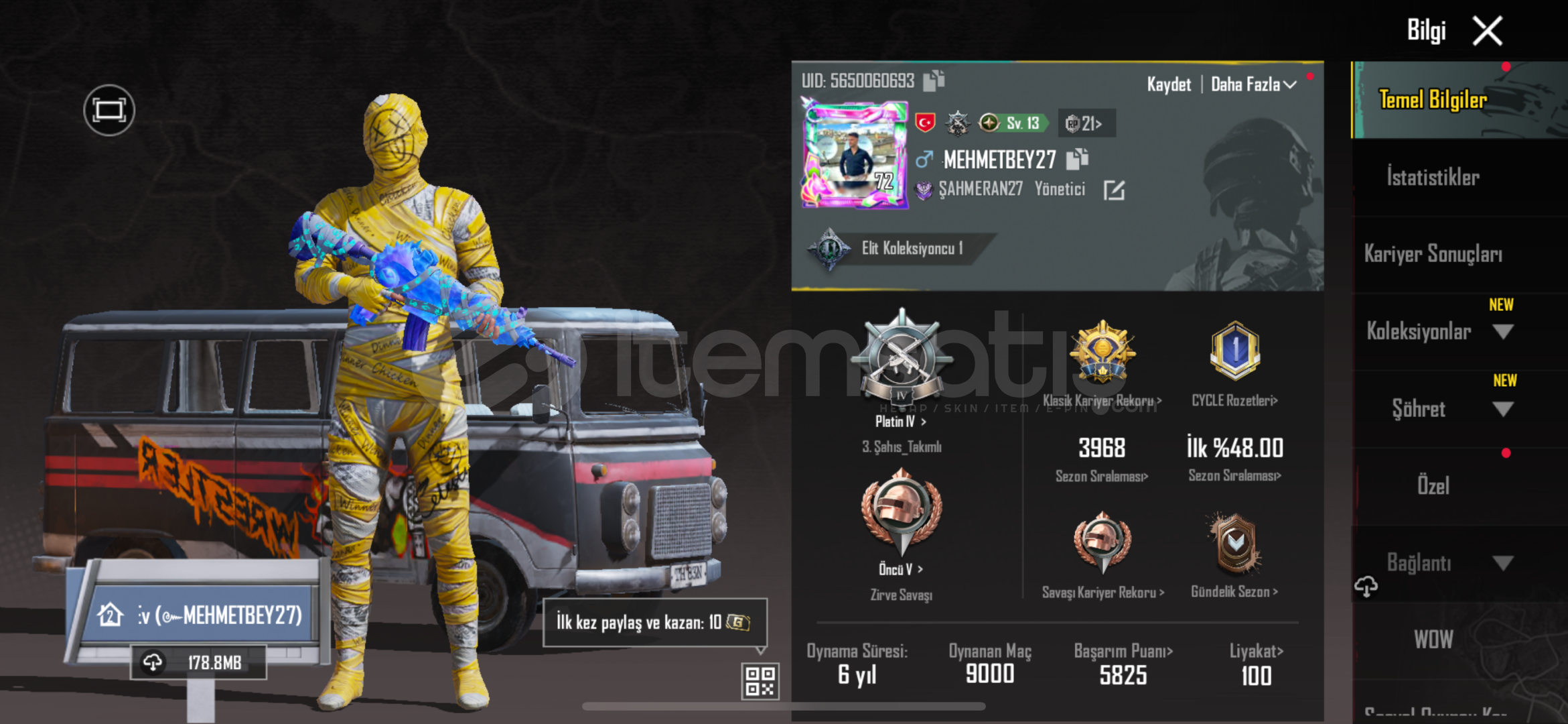 hesabım 72 level olup tertemiz hesaptır 2 adet mumya ve silahlar iyi görüldü gibi