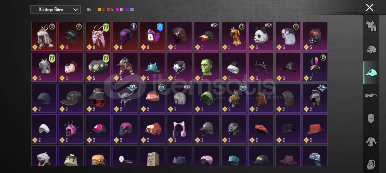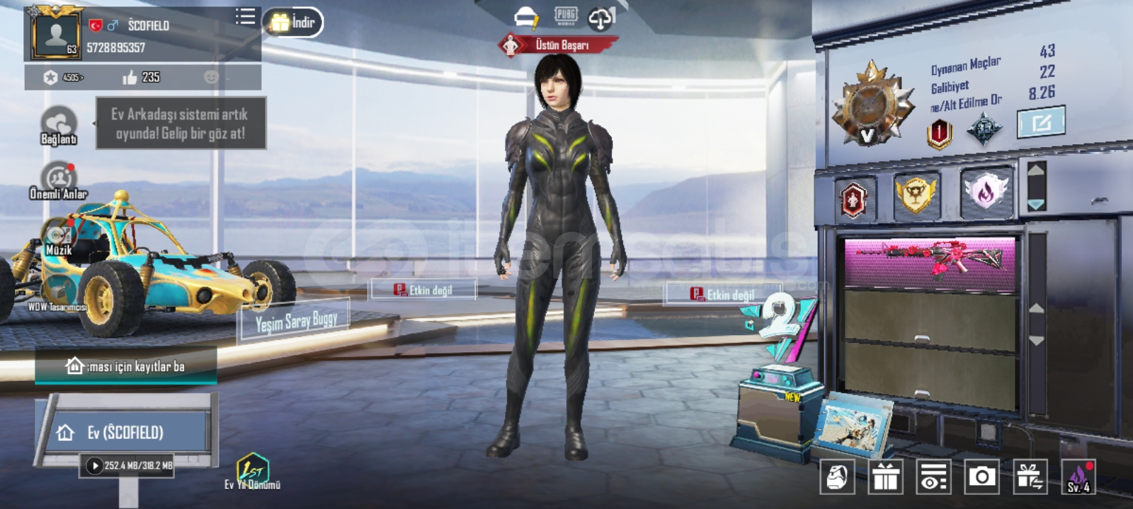 Neredeyse bütün silahların skini vardır 2 max silah vardır 2 sezondur as hesap 64 seviye120k populerlik4 sezon rp acilmistir
