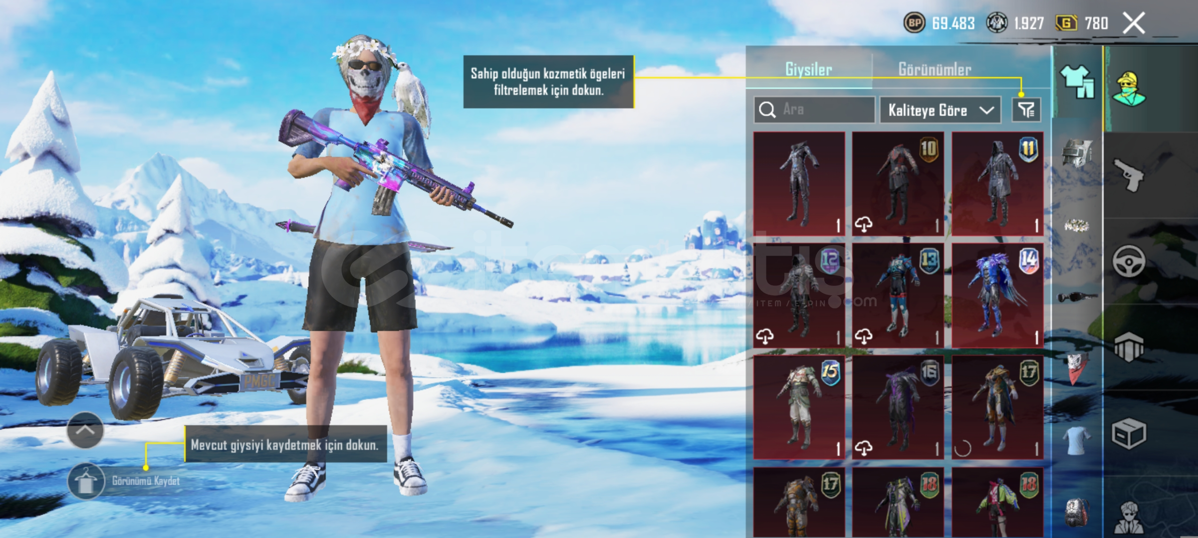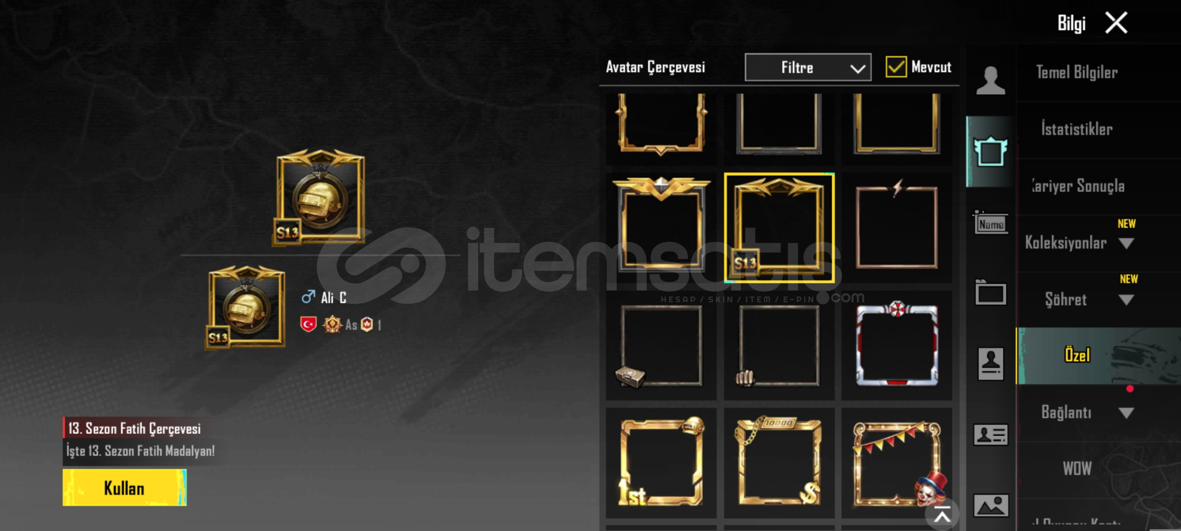 Hesap 79 seviye çok nadir bir hesap mavi üst siyah alt ve nadir birsuru skin var 51 destansı sezon 12 ve 13 de fatih olmuş re 2 cerceve ve şimşek çerçeve var tam mainlemelik güzel bir hesap fiyatta pazarlik olur detayli bilgi icin dm gelin