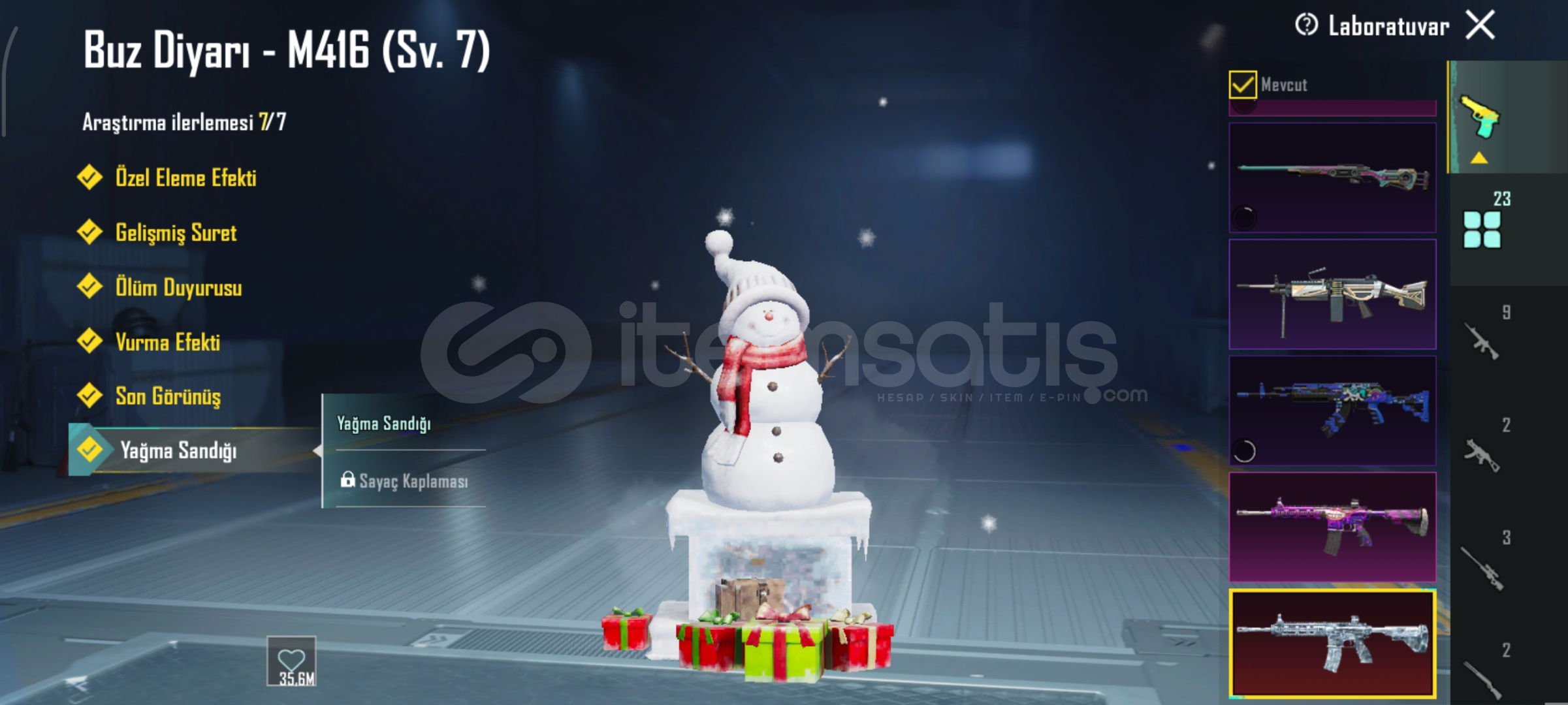 Hesapta buz diyari maks olup 23 adet yükseltilebilir silahı vardır onun dışında destansı gösteriş ünvanlar başarımlar baya yüksektir 570844437id bu bakabilirsiniz