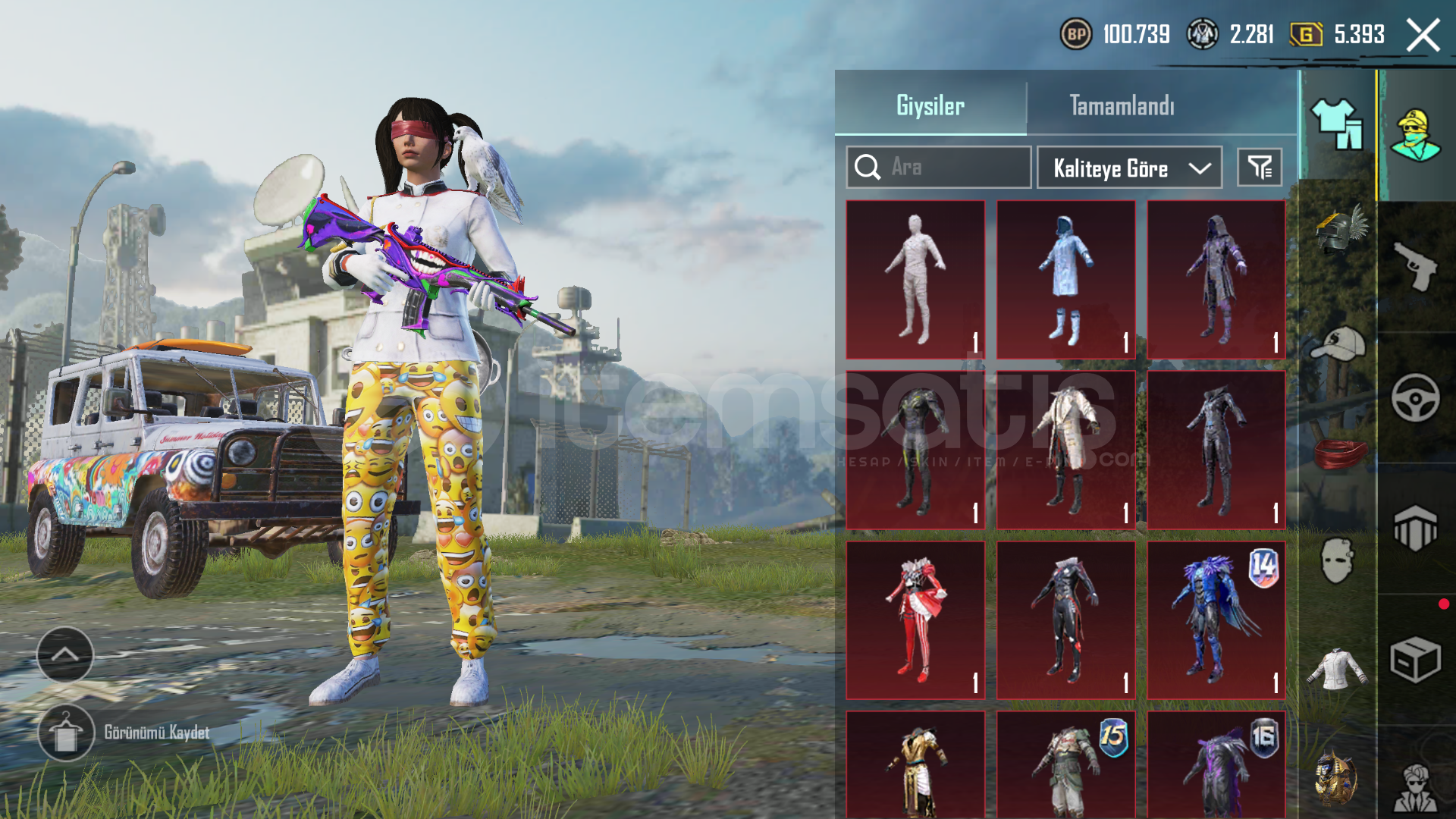 55 DESTANSIKOMBİN BABASIYAZLIK UAZS5 SAÇFİRAVUN ÇANTAMEDYUM KASK---------------------------------------MASKARA 6 SEVİYEYÜKSELEN EJDERHA MG3 4 SEVİYEGÖKKUŞAĞI UMP45 4 SEVİYEKATİL BALKABAGI GROZA 2 SEVİYETHOPSON 2 SEVİYEMİDLLİ M762 2 SEVİYEATOMİK TETİK S12K 2 SEVİYEBUKELEMUN BİZON 2 SEVİYEGÖKSEL İŞARET 4 SEVİYEKARGA VSS 3 SEVİYEÖLDÜREN NAĞMELER 2...