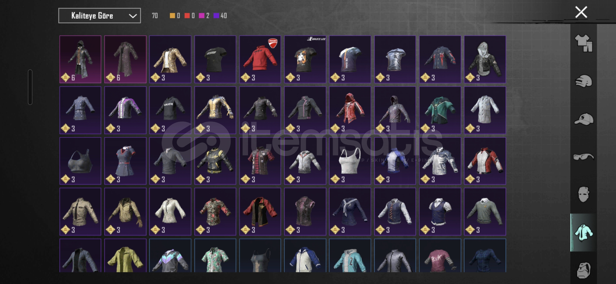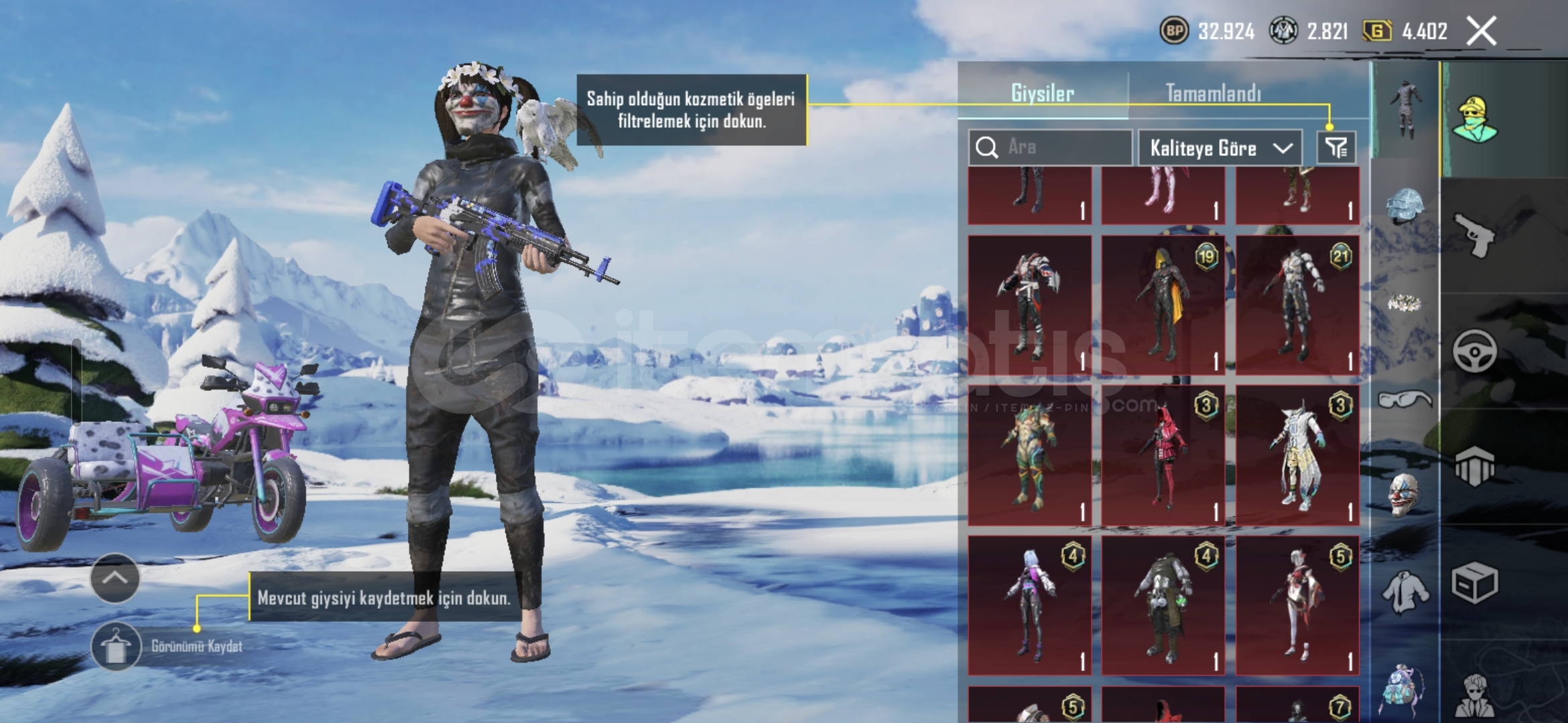 Hesap BilgileriS4 YüzS5 SaçS2 MASKESİS2 SETİKapüşonlu Ducati KazakWALKER KapüşonlusuBuz Diyarı KASKGaladria Sırt Çantası DESTANSIKIRMIZI GÖZ BANDI S11 TAVUK ÇANTA1 Şahin Yoldaş MAX16 YÜKSELTİLEBİLİR 2 ÖLÜM DUYURULU34 DESTANSINadir öğeler 48 KOLEKSİYON SEVİYESİ 14 ARAÇ DESENİBOL KASK VE ÇANTA KAPLAMASI 127 SİLAH KAPLAMA DESENİBOL...