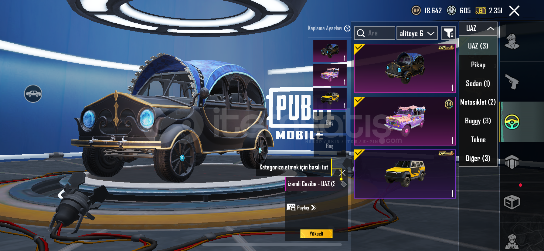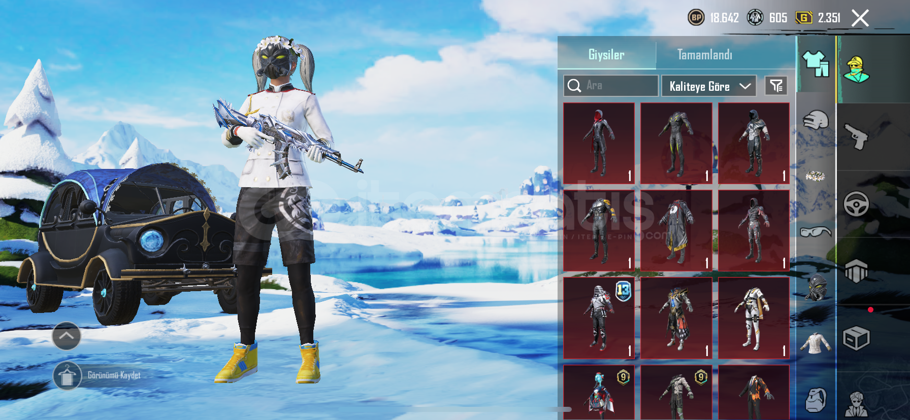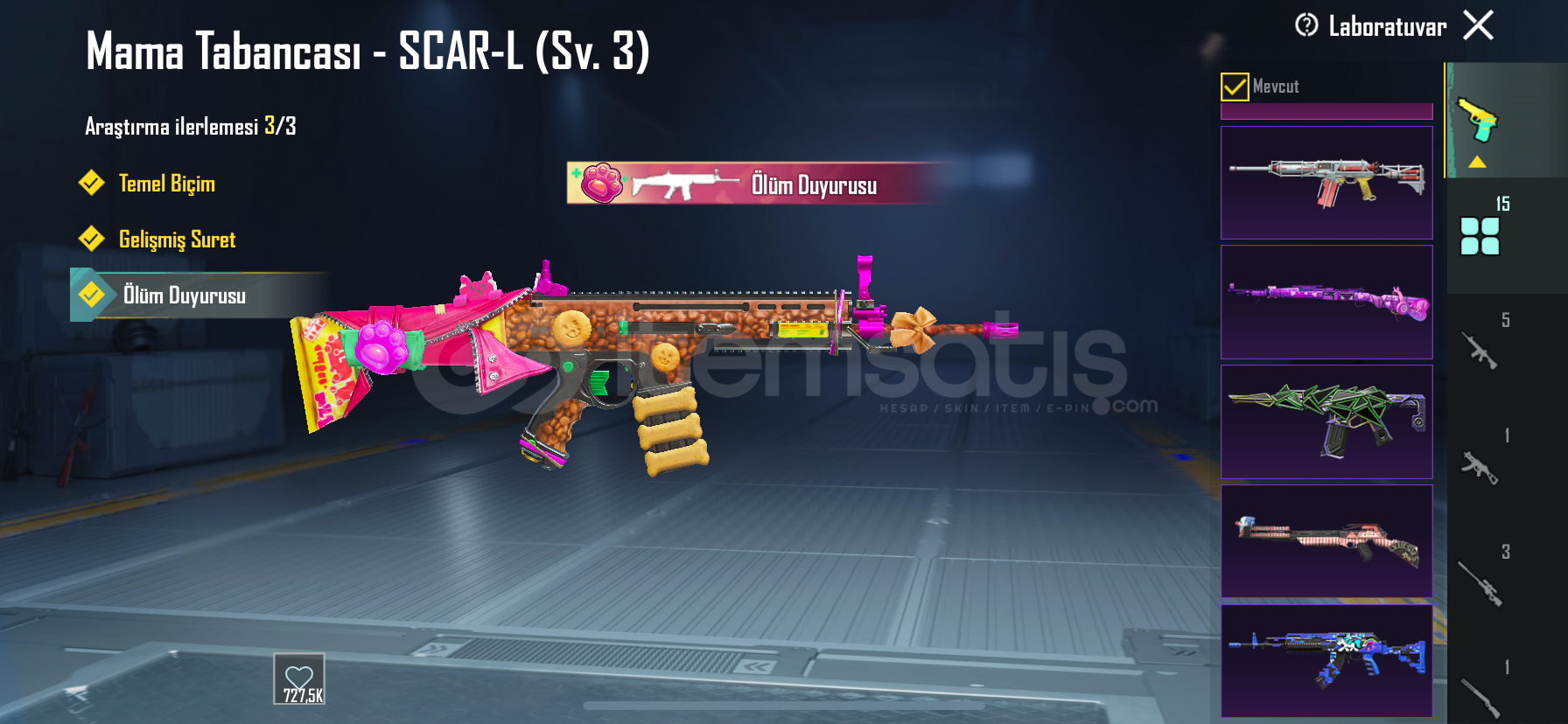 15 YÜKSELTİLEBİLİR Scar l(3.seviye)ölüm duyurusuM16A4(3.seviye)ölüm duyurusuHançer(3.seviye)ölüm duyurusuUzi(3.seviye)ölüm duyurusuM762(4.seviye)ölüm duyurusuDETAYLI ÖĞELER47 DESTANSI ÖĞEİşgalci seti+emojisiseri katil seti+emojisiZaman seyyahı seti+emojisiÇelik asker kostümü+emojisiKomutan üstü+Ananas ayakkabısı+şortuRoyale Pass açı...
