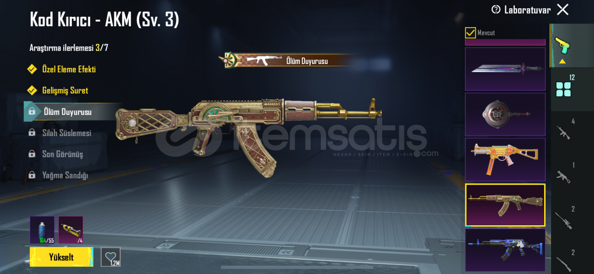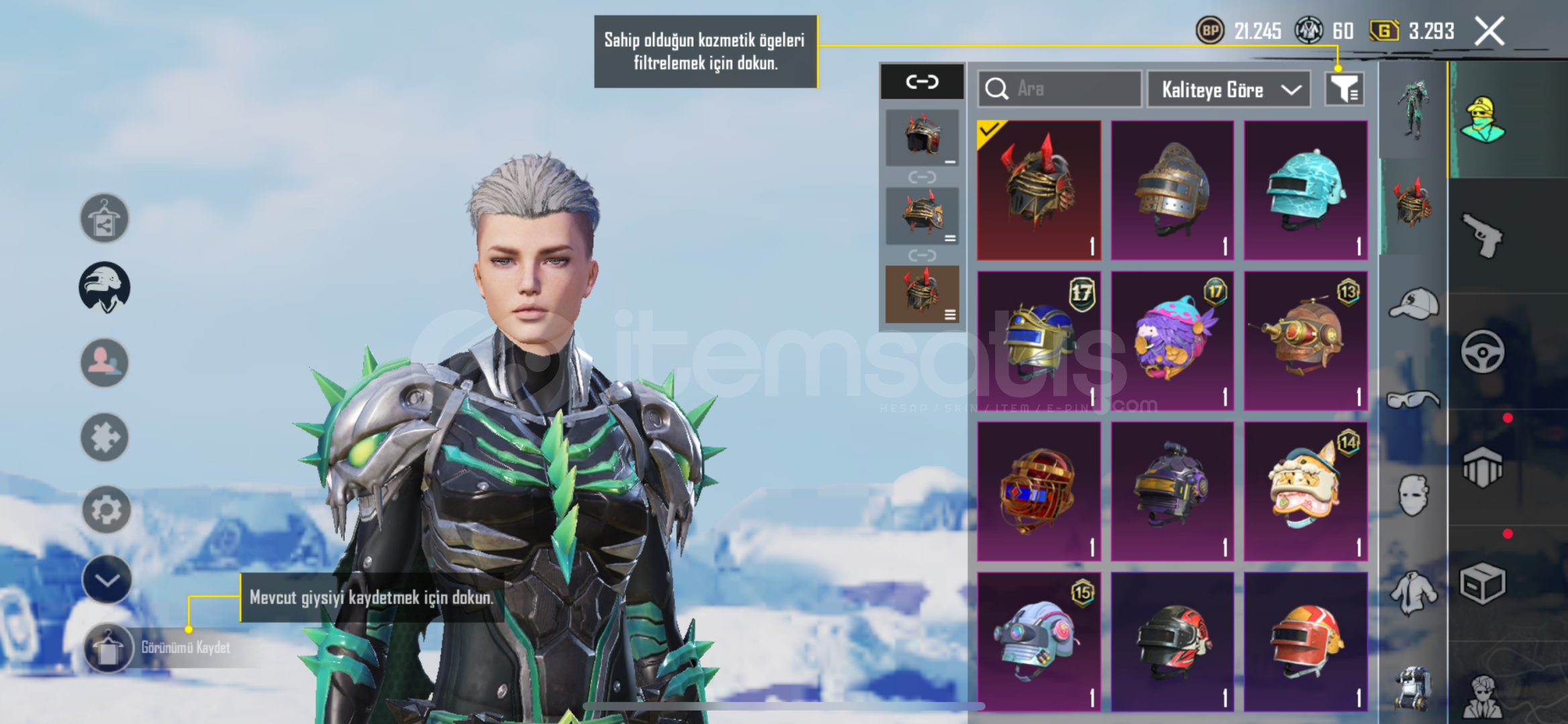 Hesabımızda s4 yüzü ve sacları vardır akm 3 seviye kar 98 ölüm duyurulu 3 sv aug ölüm duyurulu 4 sv awm 2 sv m7 1 seviye 35 destansı mevcuttur dacia 2 uaz 2 araç desenlerin coğu vardır e posta ölüdür isterseniz form atılıp e posta kaldırılır fakat bu seferde form geçmişinden form almış olur hesap alanı üzmez alıcına şimdiden hayırl...
