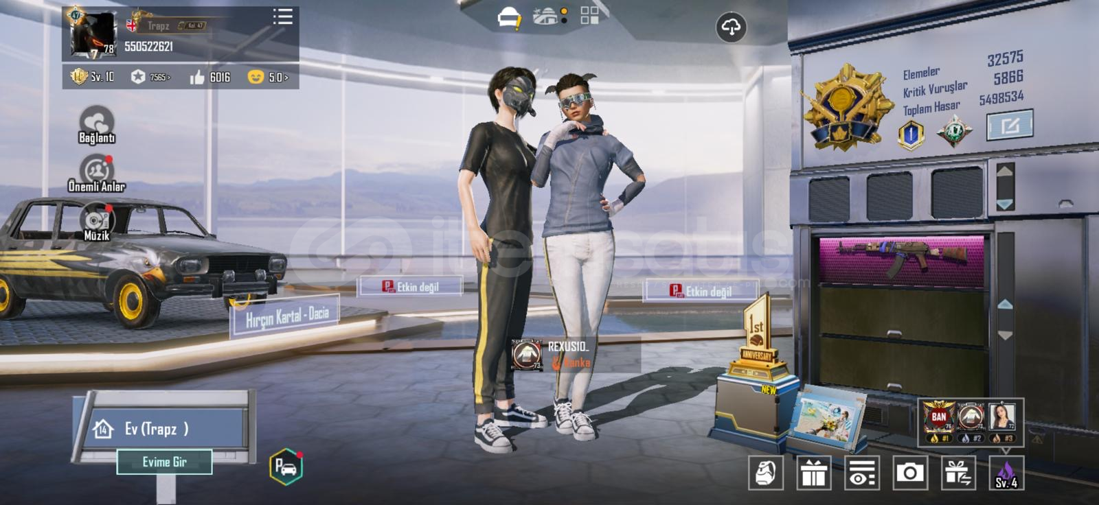 550522621Hesabın ID si yukarıda olup detaylı bir şekilde koleksiyonu inceleyebilirsiniz.Siyah FormaMavi Şort1st Eşofman AltıToplam 9 tane yüksektilebilir silah vardır.Buz Diyarı M416 (Sv. 2) Zarif Leylak Thompson (Sv. 3) Kill Mesajı AçıkGece Gladyatörü PP-19 Bizon (Sv. 3) Kill Mesajı AçıkKış Kraliçesi M249 (Sv. 2)Diğer silahlar 1 seviyedir.Hesapta E posta ve Telefon Numaras...
