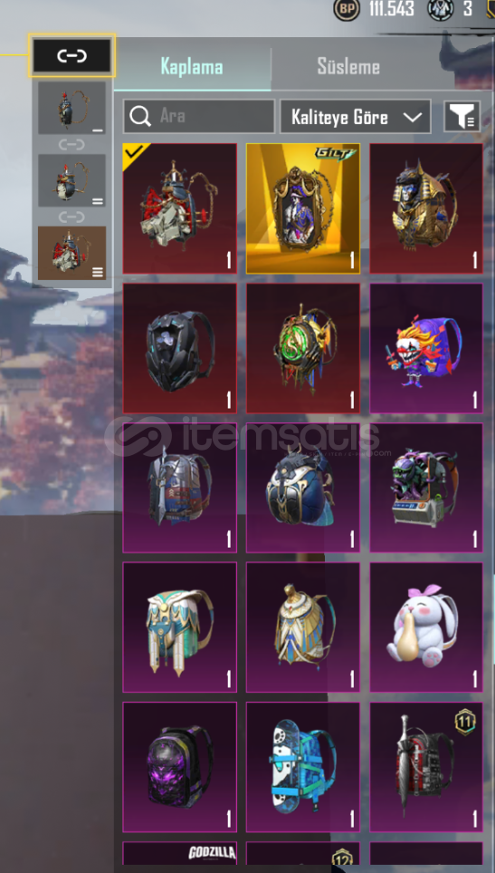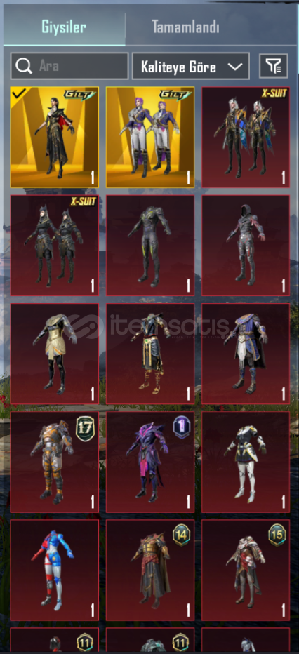 4 yıldır kullandığım emek hesabım2 tane nihai set 1 nihai çanta 1 nihai başlık bulunmakta.37 destansı kıyafet+ destansı gösteriş rozeticrew seti full + komutan seti full4 destansı çanta 1i xsuitin çantası2 x suit bulunmakta.Mumya m4 5 seviyexsuit aug 2 seviyemumya uzi 4 seviyefiravun ump 7 seviyeyıl dönümü umpfiravun dbs 4 seviyefiravun m24kod kırıcı akm, yarın ...