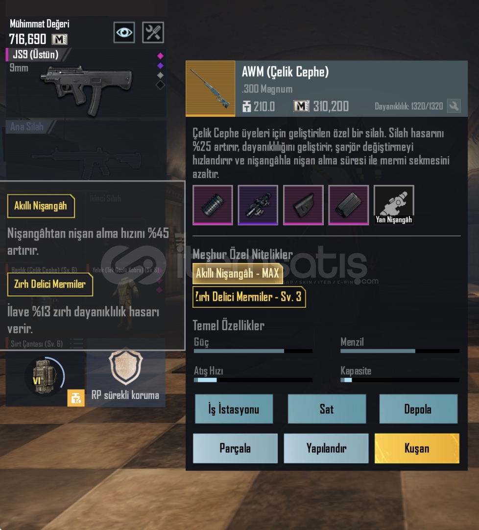 ✅Renk (Sarı)✅Silah (AWM Çelik Çephe)✅Özellik (Akıllı Nişangah Max Nişangahdan Nişan Alma hızını %45 Arttırır)✅Özellik (Zırh Delici Mermiler SVY.3 İlave %13 Zırh Dayanıklılık Hasarı Verir)✅Müşteri Memnuniyet Garantisi 7/24 Ulaşabilirsiniz.