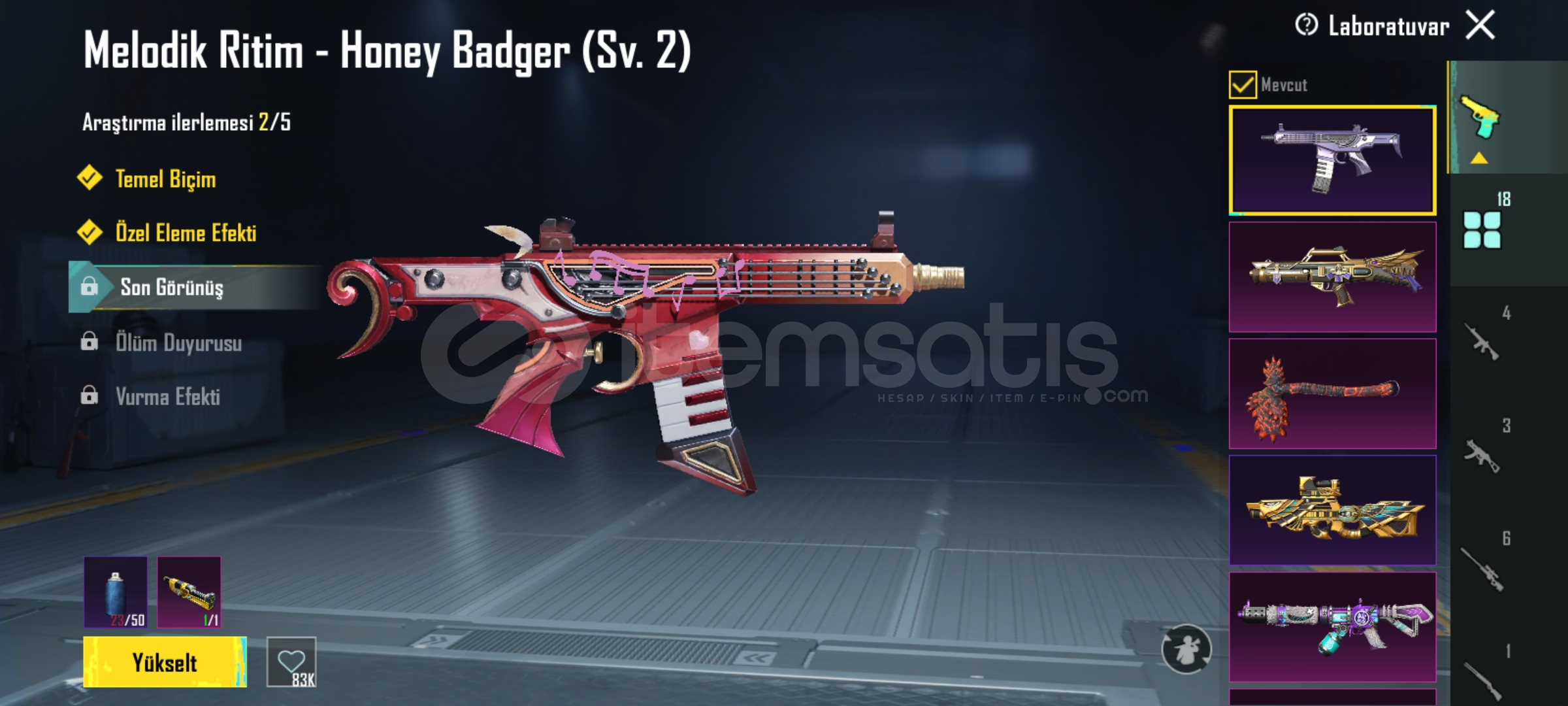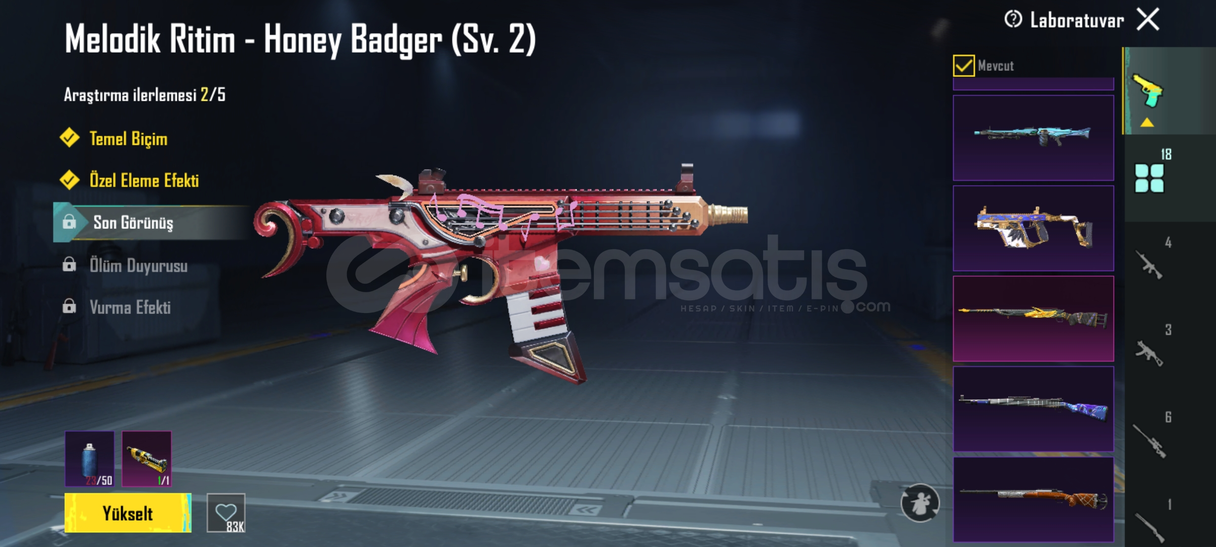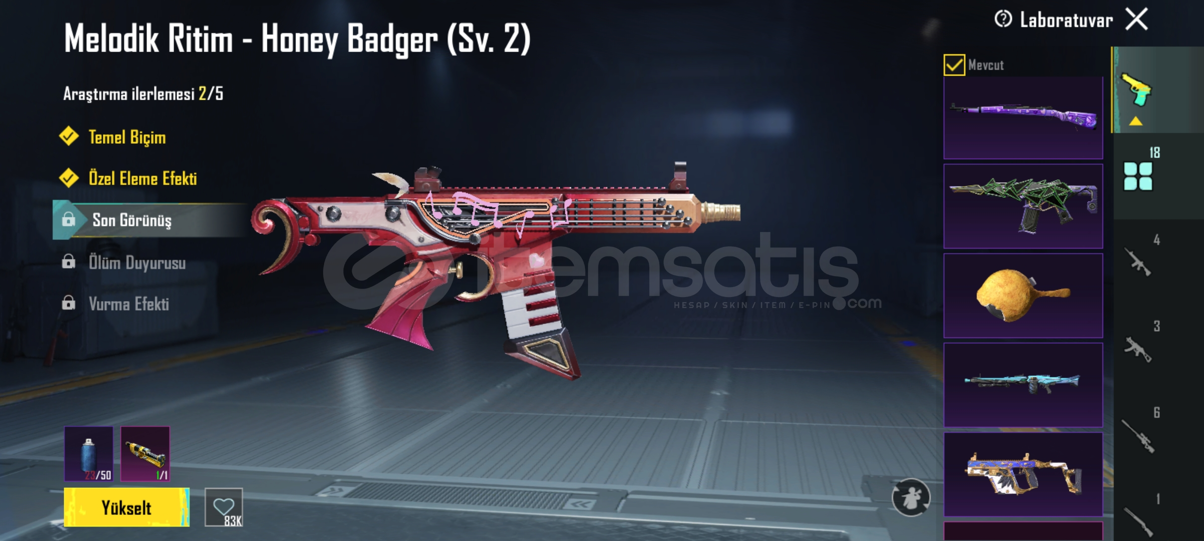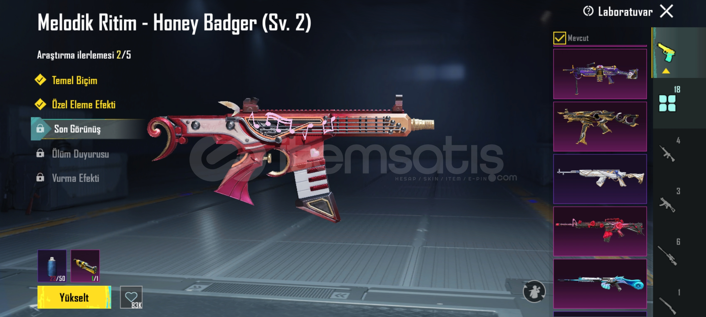 73 adet silah kaplaması (18 adet destansı yükseltilebilir)