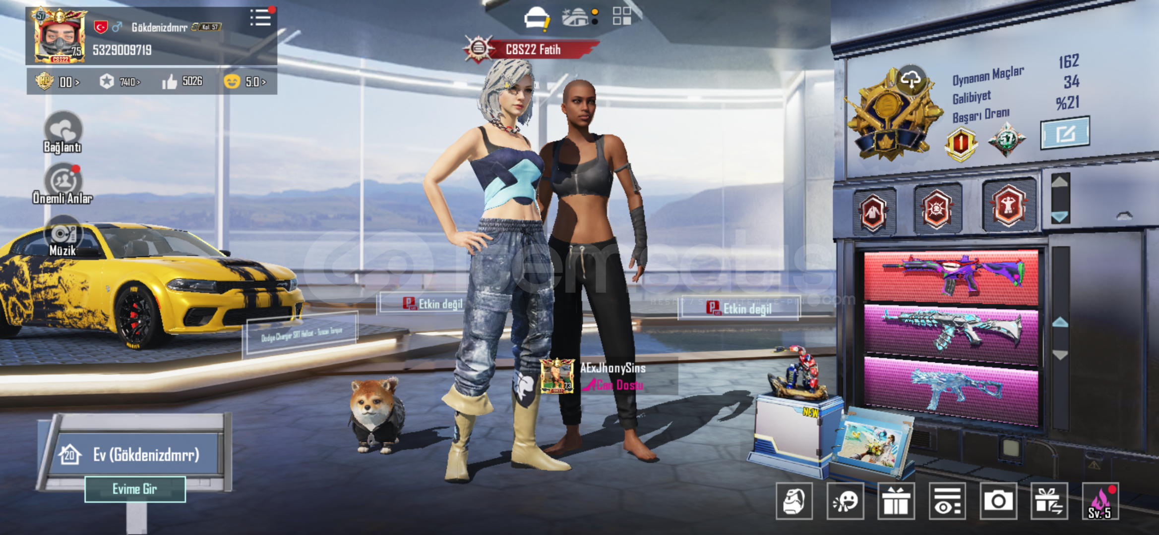 Hesbım çok eski hesap ilk sahibi benimdestansı gösteriş mevcutdaha bir çok şey mevcutoyunu bıraktım için satıyorumrp 100Masakara 7 seviye ve bir çok silahbuz akm 5 seviyebuz uzi 3 seviyebuz ump 4 seviyebaşka silahlarda mevcutur