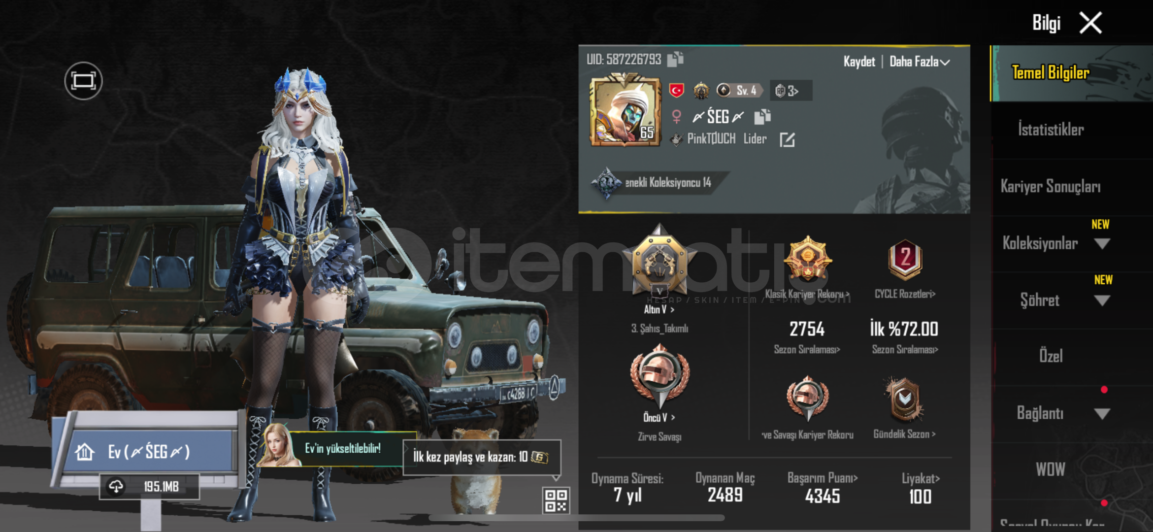 E posta değişimiyle teslim edilecek302 UC hesaptaAnna, Viktor,Sara,Emilia ve Laith karakterleri var.2 adet yoldaş kedi ve köpek65 takım kıyafet,59 şapka,6 kask kaplama,24 göz aksesuar,34 yüz maskeleri, 73 üst,9 çanta kaplama,42 alt, 31 ayakkabı, 8 keskin nişançı,13 otomatik, 5 nişan tüfek, 6 makineli tabanca,2 pompalı, 2 hafif makineli tüfek, 4 yakın dövüş KAPLAMALAR.6 ara&ccedi...