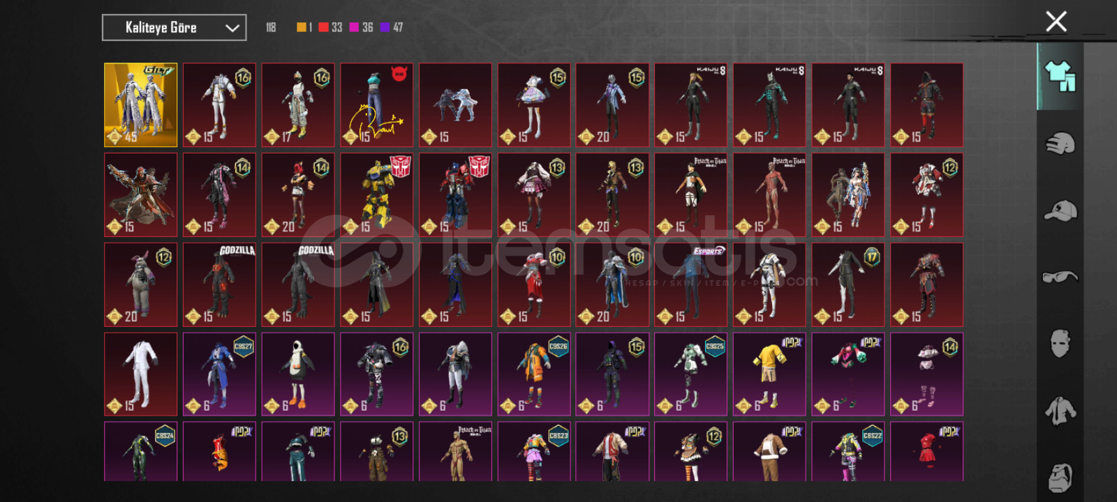 57 DESTANSI2 NİHAİ17 YÜKSELTİLEBİLİR SİLAH15 ARABA DESENİ (SIRADAN)BUZ DİYARI M4 3 SVHESAP 58 LVLKOLEKSİYON 48 LVL6 AY PRİME PLUS AKTİF4 YOLDAŞ 2 YOLDAŞ KIYAFETPOP 1.46 MN TEMİZ HESAPALICISINA HAYIRLI OLSUN