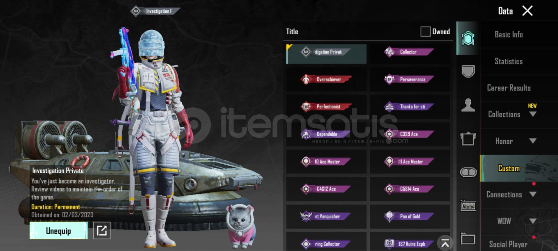 detaylı video mevcutturenvanterde 500'den fazla ürün (kıyafetler, silahlar, sırt çantaları ve daha fazlası)hesap seviyesi: 63açılmış rp sayısı: 5uçak skin: 6toplam Destansı ürün: 31yükseltilebilir silahlar: 5buzul kasksilahlar: 100+araçlar: 10Unvanlar: 22 (dedektif er,arşivci, mükemmeliyetçi)isim etiketleri: 9koleksiyon seviyesi: 42 elit koleksiyoncu 2özel skinler(s&#...