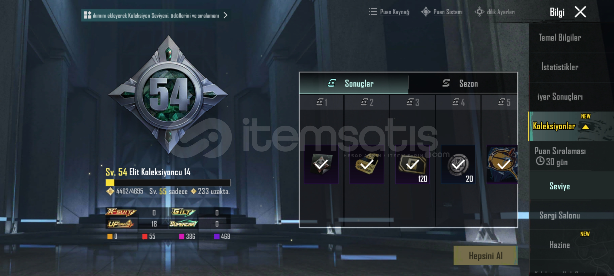55 destansı 18 yükseltilebilir 6 ölüm duyurusu 54 koleksiyon