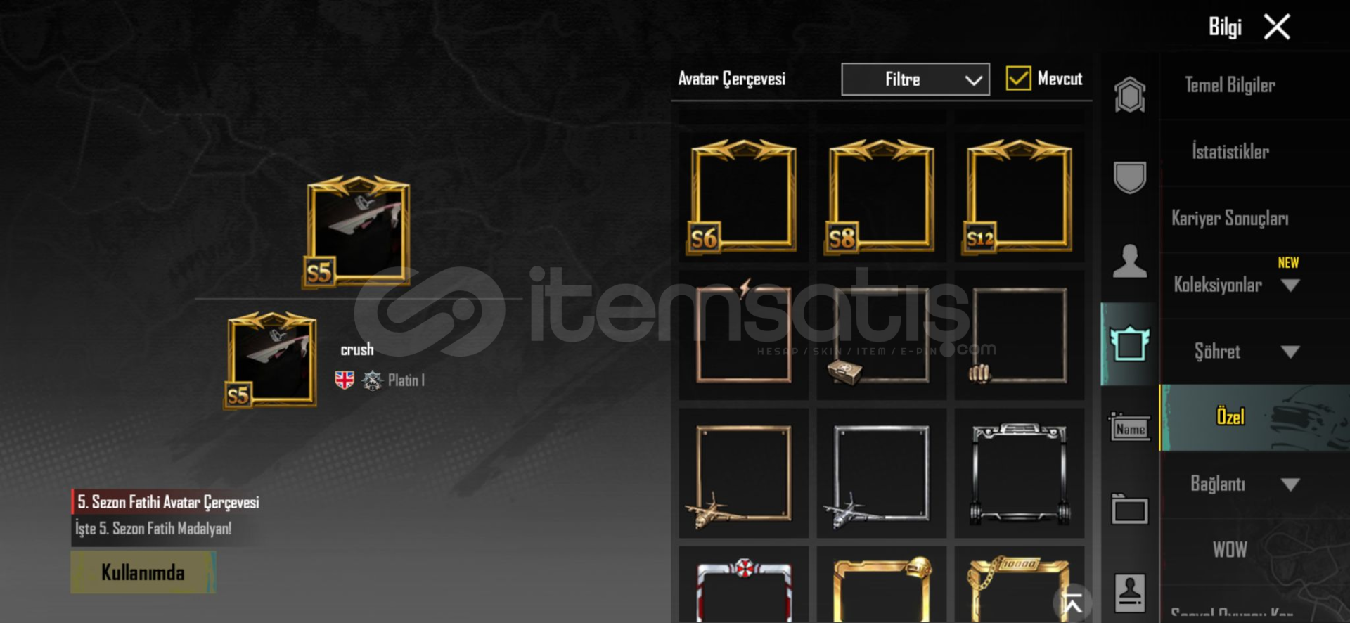 HESAP GÖRÜNDÜĞÜ GİBİ SORUNSUZ DEVİR YAPILACAKTIR.HESAPTA;s5,s6,s8,s12 re2 çerçeveleri ve s2 çerçeveleri bulunmakta.-KANUN KAÇAĞI ŞAPKASI S3-KOVBOY ŞAPKASI-ENERJİ SWEATSHİRTİ-MOR SPORCU ÜSTÜ-SİYAH MAVİ FORMA-CREW-KOMUTAN VE ANANAS ALT ÜSTEMOJİ-KAFA SALLAMA GÜLME EMOJİLERİ-ZIRHLI AVCI-NUT SAVAŞÇISI-ZIRHLI TAZI-SAHA KOMUTANI-HESABIN DÜ...