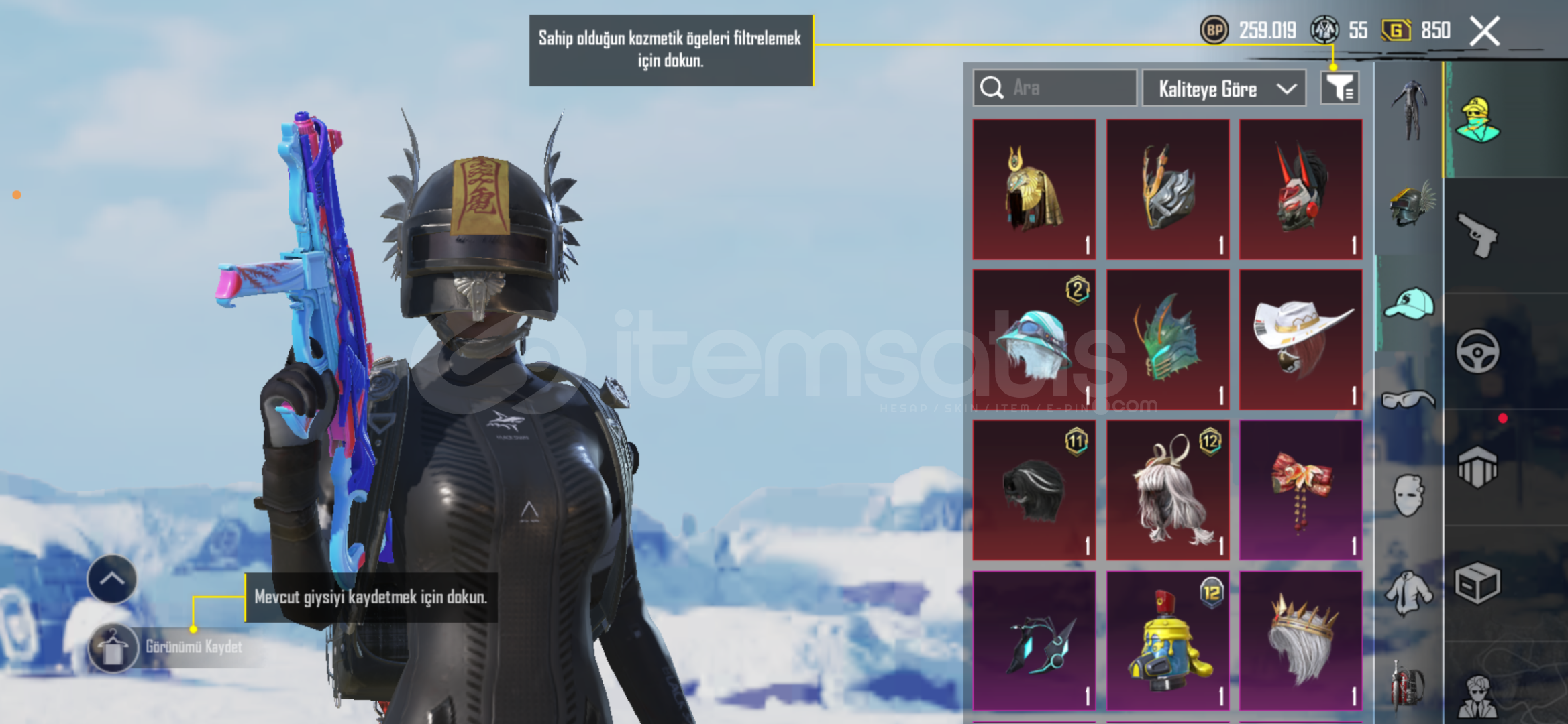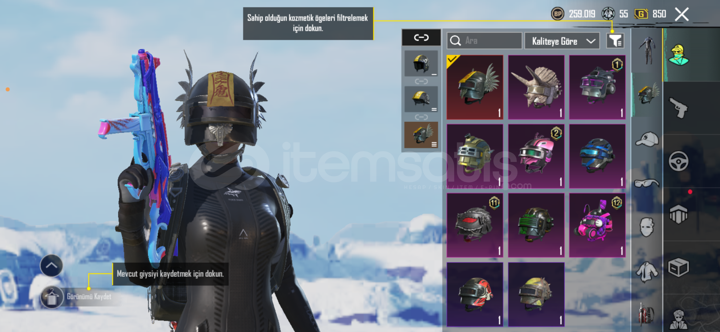 Hesab eski sezon hesaptır 9 yükseltilebiliri var 23 destansı var hesab orta seviyedir dediğim gibi özel emojiler var medium kaskı var yükseltilelim silahların çoğu ölüm mesajlıdır alıcısına hayırlı olsun
