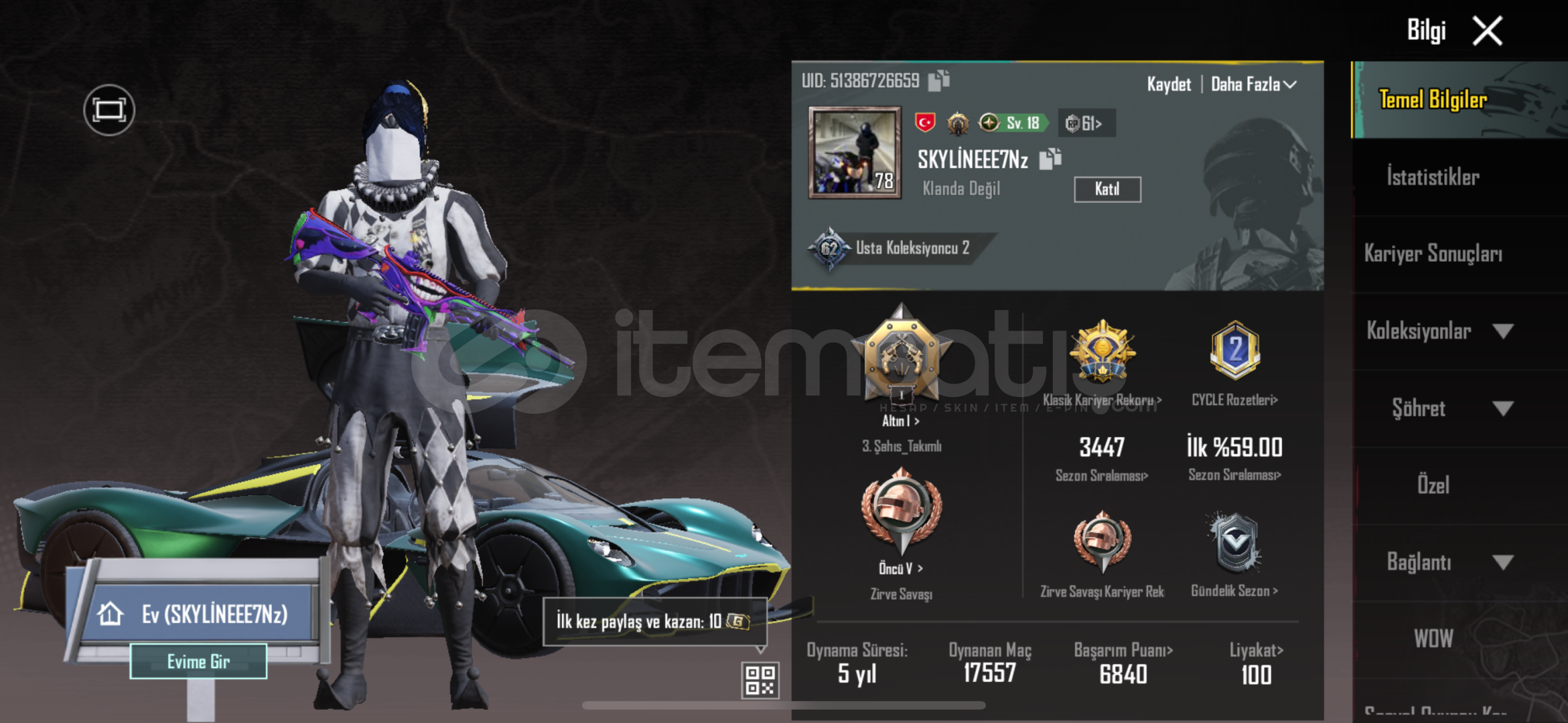 Hesap koleksiyon 62 aston martin maskara m4 5 seviye ekstra eklentiler varsu m4 5 seviye ekstra eklentiler varhaset dikeni scar 6 seviye yedi denizler akm 4 seviye 10 tane silahta ölüm duyurusu var 29 yüksekeltilebilir1 nihai 2 x-suit100 destansı hesapta daha çok şey var koleksiyondan bakabilir isteyen 51386726659 ölü bağ yok form geçmişi temiz