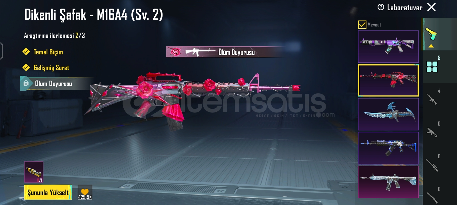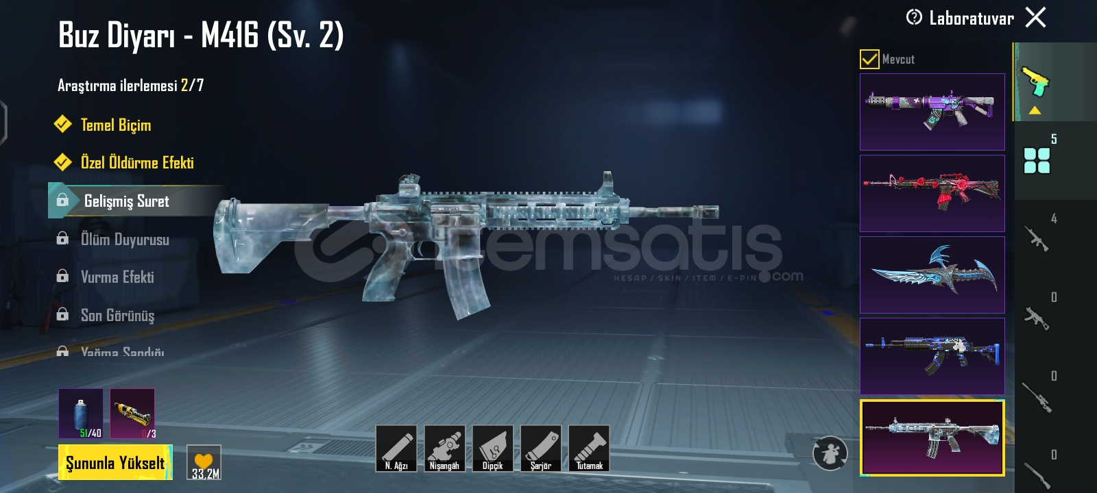 HESAPTA BUZ M4 VE MİDİLLİ VE 3 TANE DAHA YÜKSELTİLEBİLİR SİLAH VARDIR