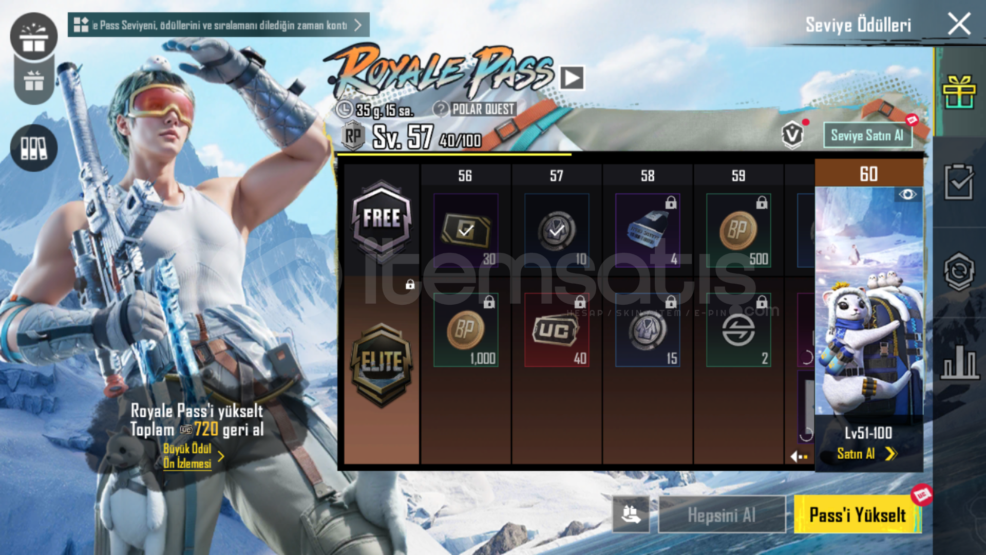 ✅ ROYALE PASS AÇILMAMIŞTIR ŞUAN RP SEVİYESİ 57, EĞER RP AÇILIRSA YAPILAN GÖREVLERDEN GELECEK OLAN RP PUANLARIYLA 65 SEVİYE OLACAKTIR