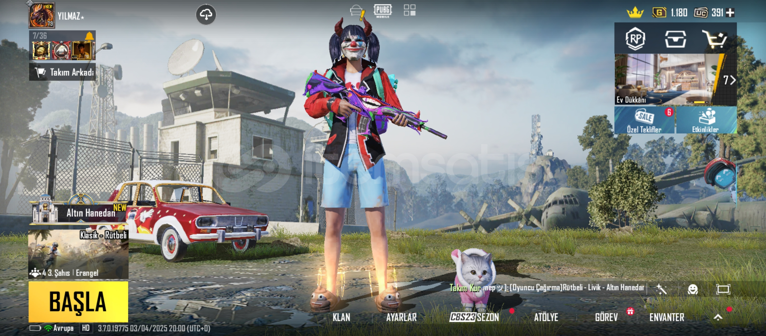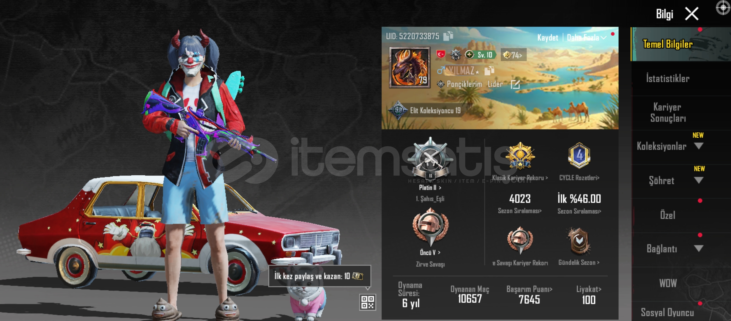 Hesap eski sezon hesabıdır bir sürü emoji dolu baya yükseltilebilir silah var 300 uc bulunmaktadır hesapta maskara em4 5 seviye ciddi alıcılar gelsin şimdiden sahibine hayırlı olsun.