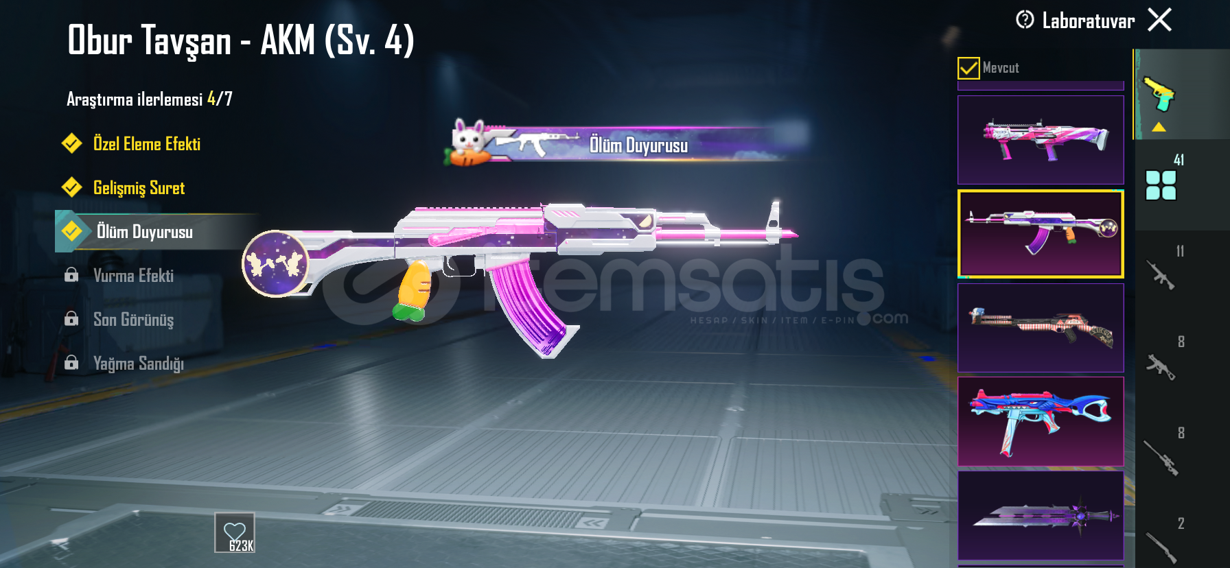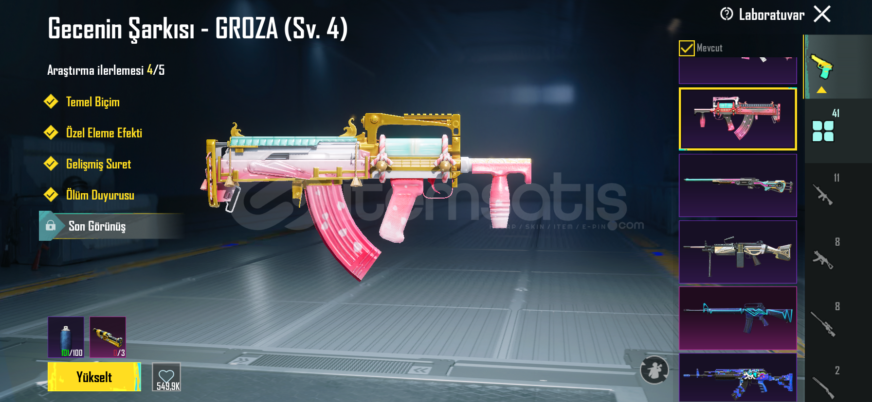HESAP YÜKSELTİLEBİLİR SİLAH BİLGİLERİ;-- 17 ÖLÜM MESAJLI