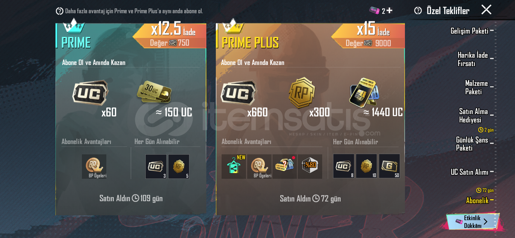 • HESAPTA HEM PRİME HEMDE PRİME PLUS ABONELİK VARDIR(109DAY+72DAY)