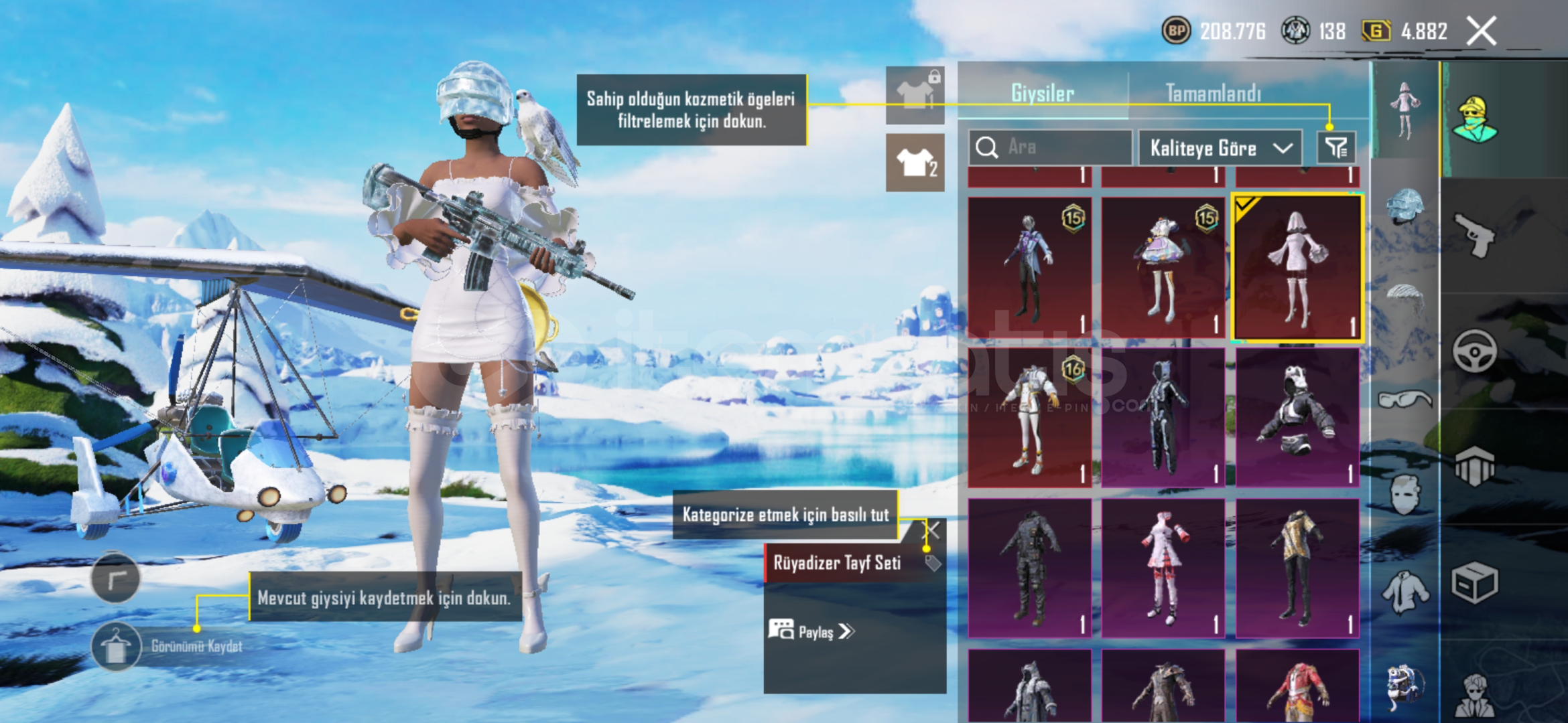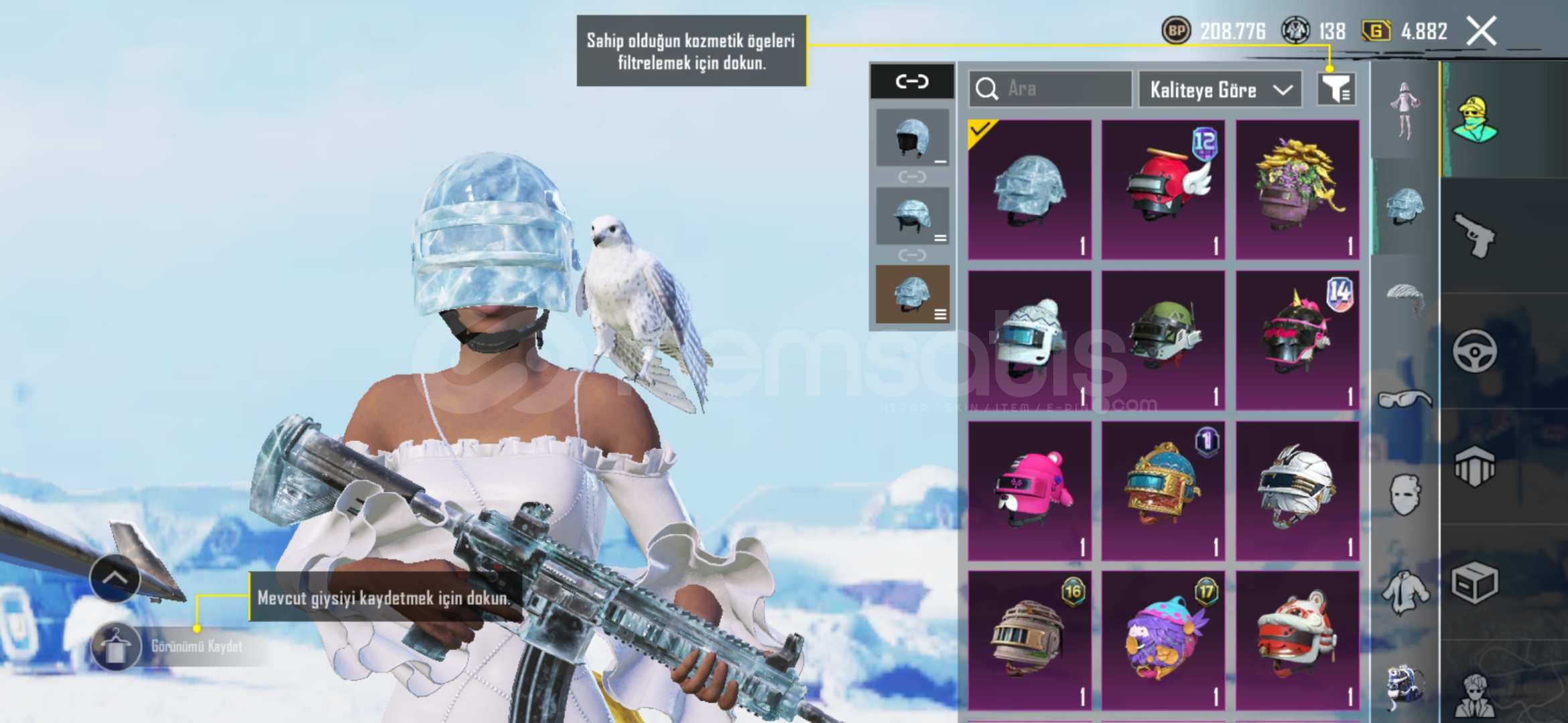 Hesapta 32 adet destansı olup rmek hesabıdır bazı sezonların rp si açıktır midilli m7 4 seviye buz diyarı ve m16a4 ün yükseltilebilir skini bulunmakta toplam tava vs skinlerle birlikte 138 skin var yüksek k.d ye sahip ve bu sezonun fatih çerçevesine sahip son olarak il ve bölge ünvanları mevcut fiyatta yardımcı olurum daha detaylı açıklama için dm den ulaşabilirsiniz ...